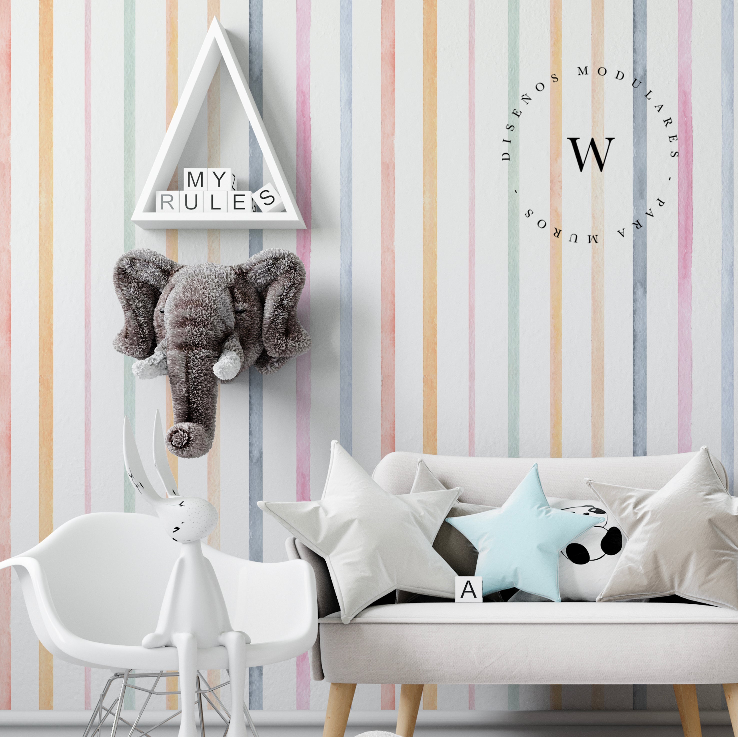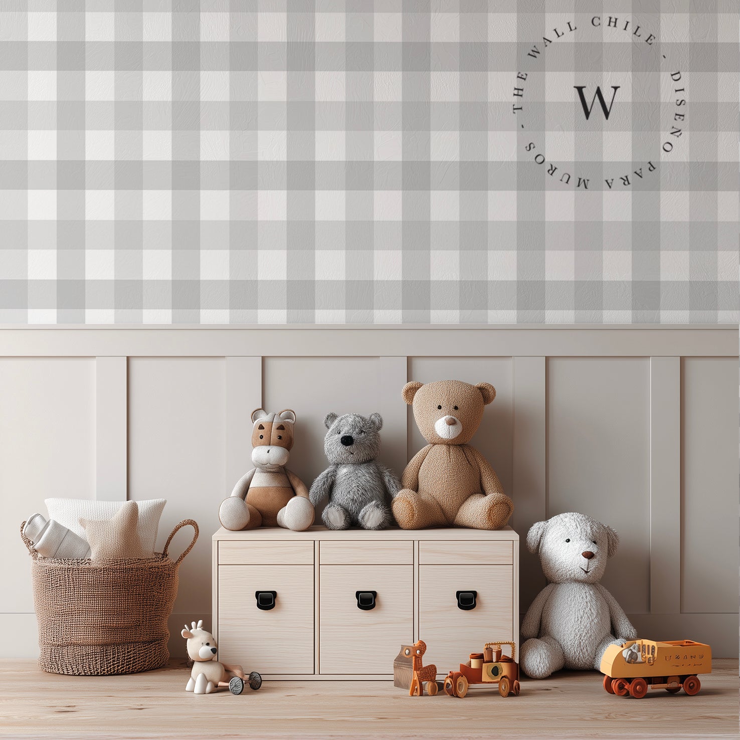 En esta colección, el diseño Vichy se presenta en una paleta de tonos neutros y pasteles, ideal para crear espacios acogedores y equilibrados. Lo encontrarás aplicado en papeles murales, cuadros y textiles decorativos, perfectos para habitaciones infantiles, livings o cualquier ambiente que busque transmitir serenidad y estilo.