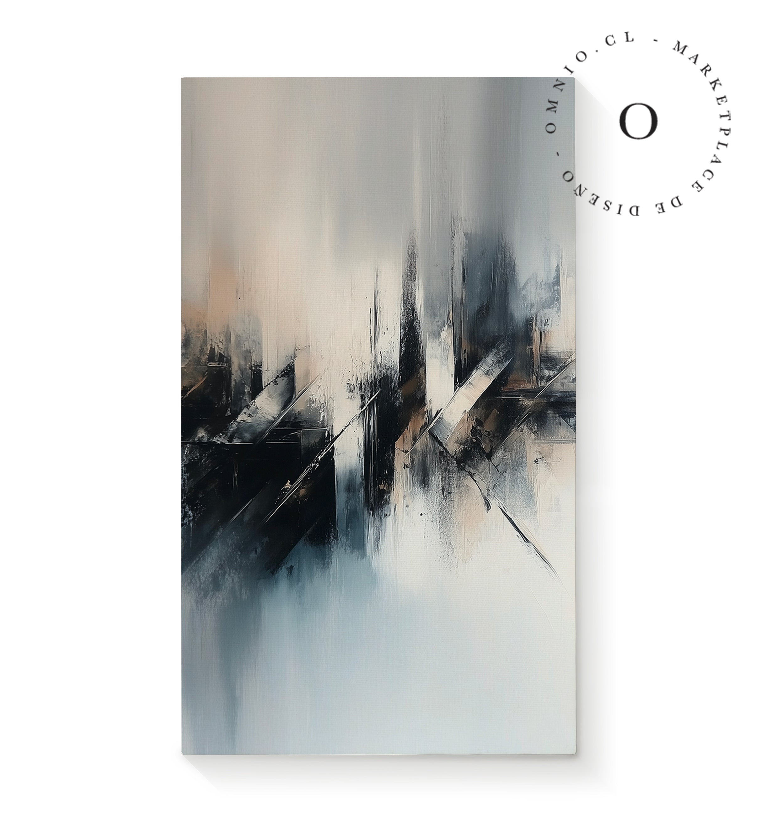 Canvas montado sobre bastidor de madera, listo para colgar.