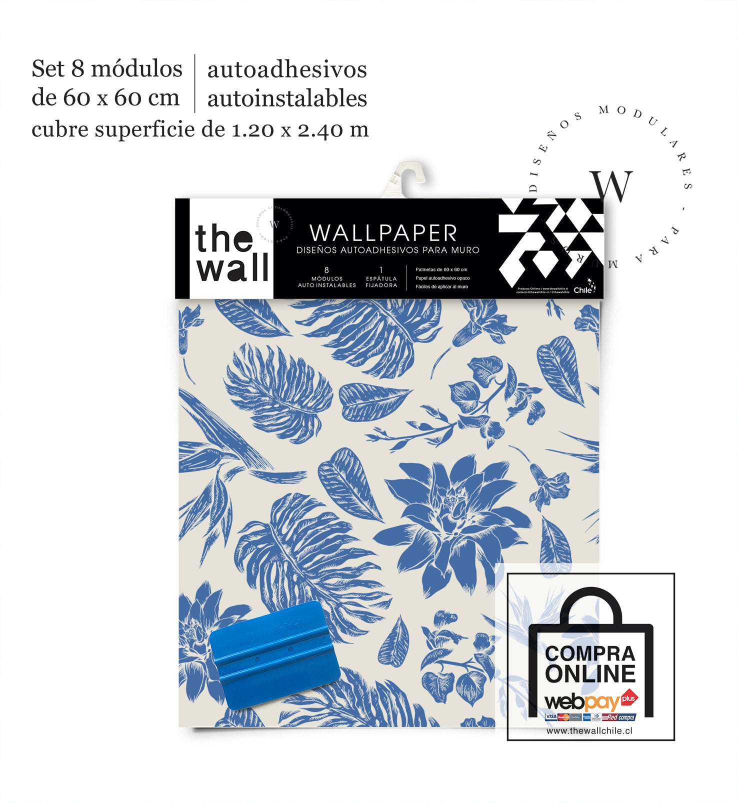 2. Set de Módulos: Módulos adhesivos y auto instalable de 60 x 60 cm que forman un patrón mayor de 1,2 x 2,4 mts (2,44 m2). Con paleta 3M para su perfecta aplicación.