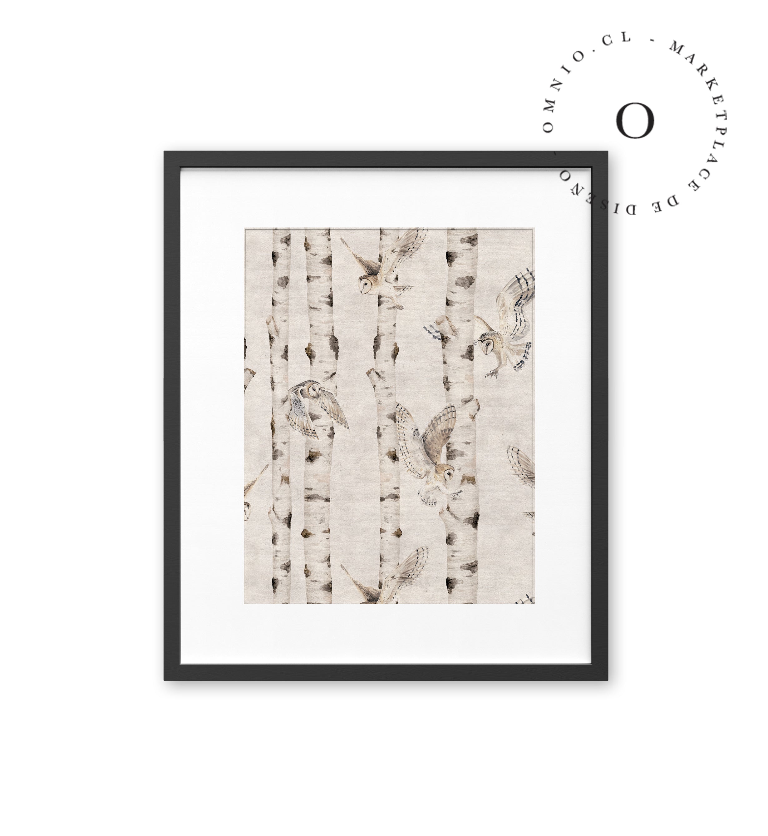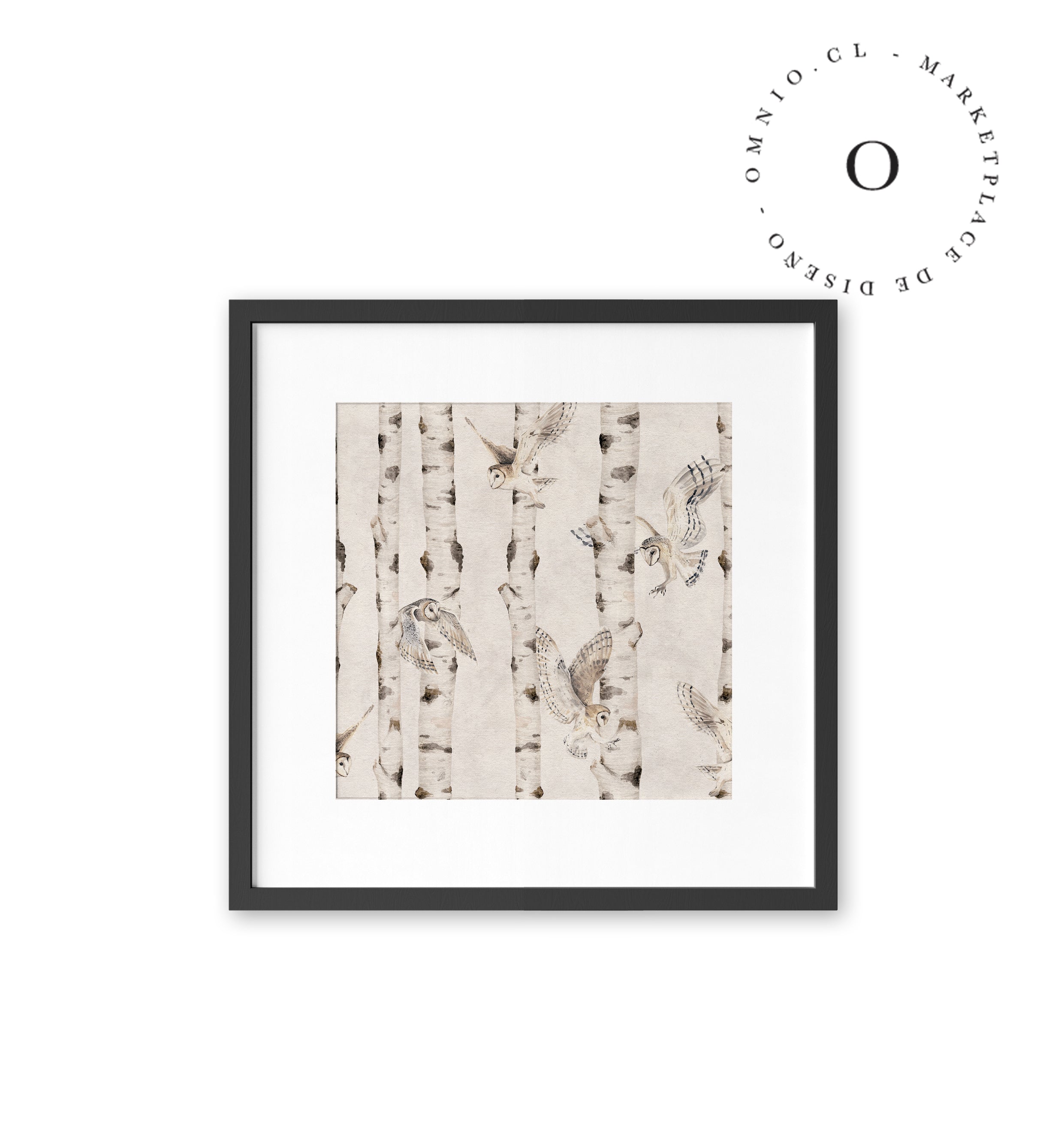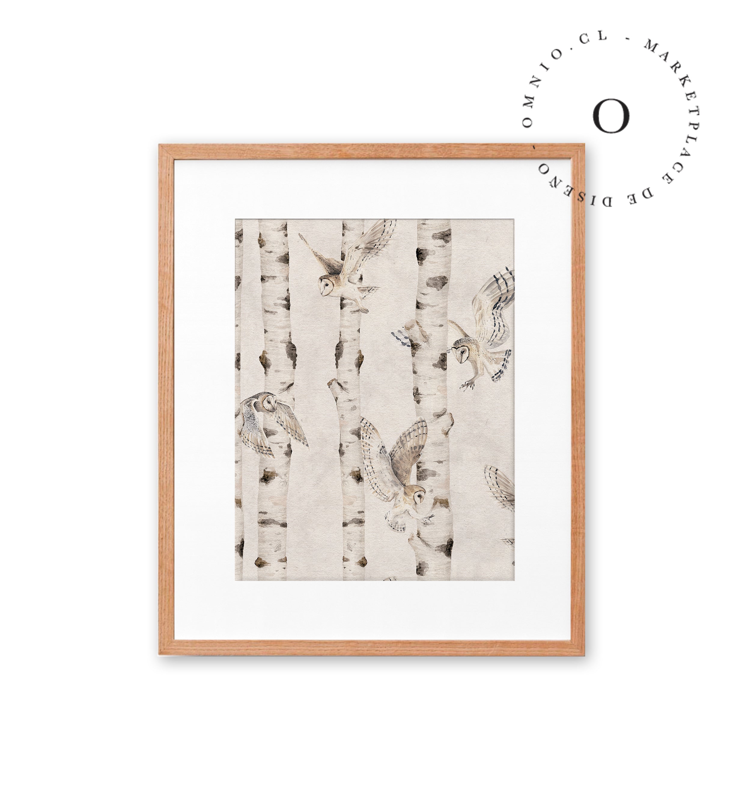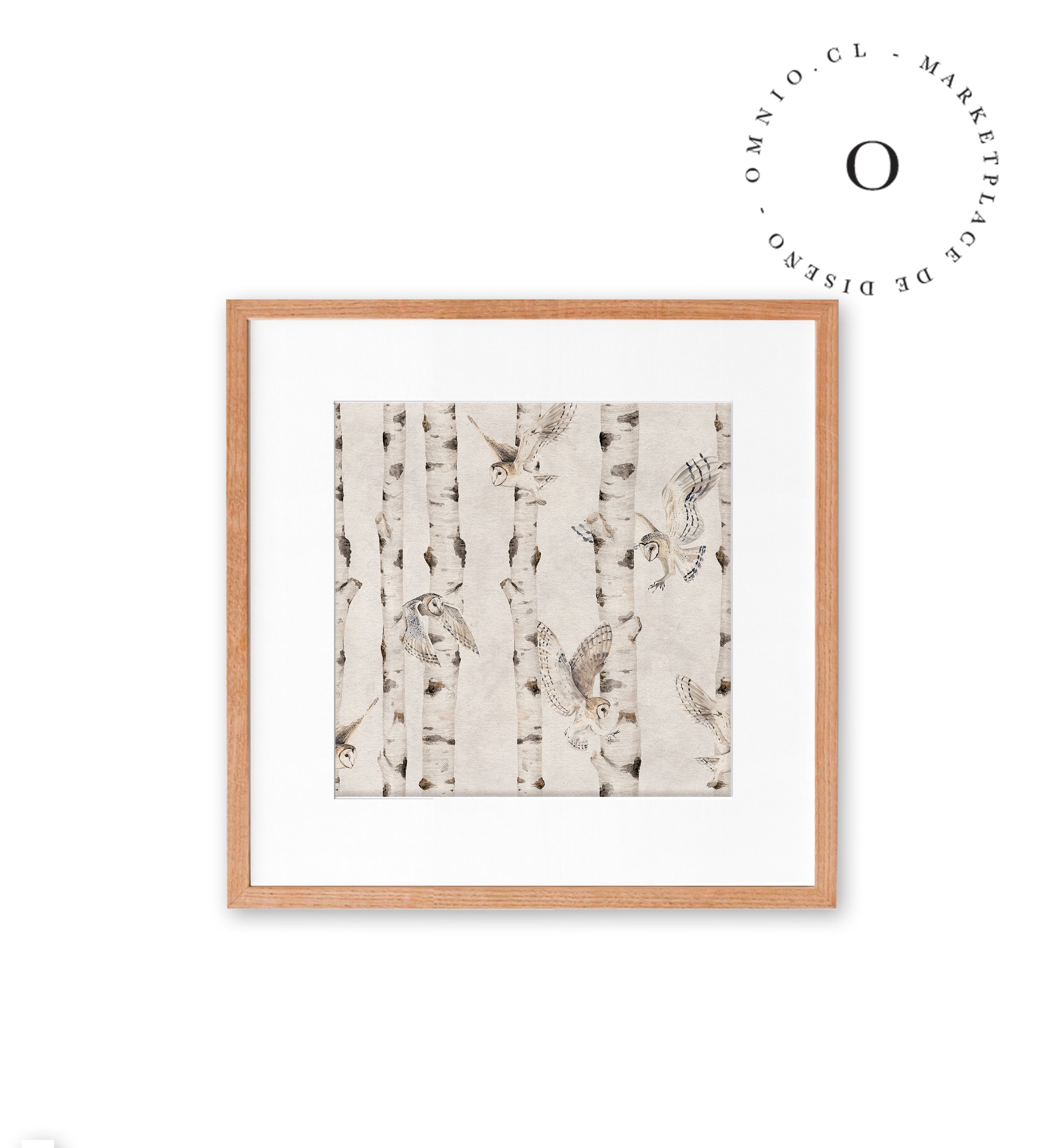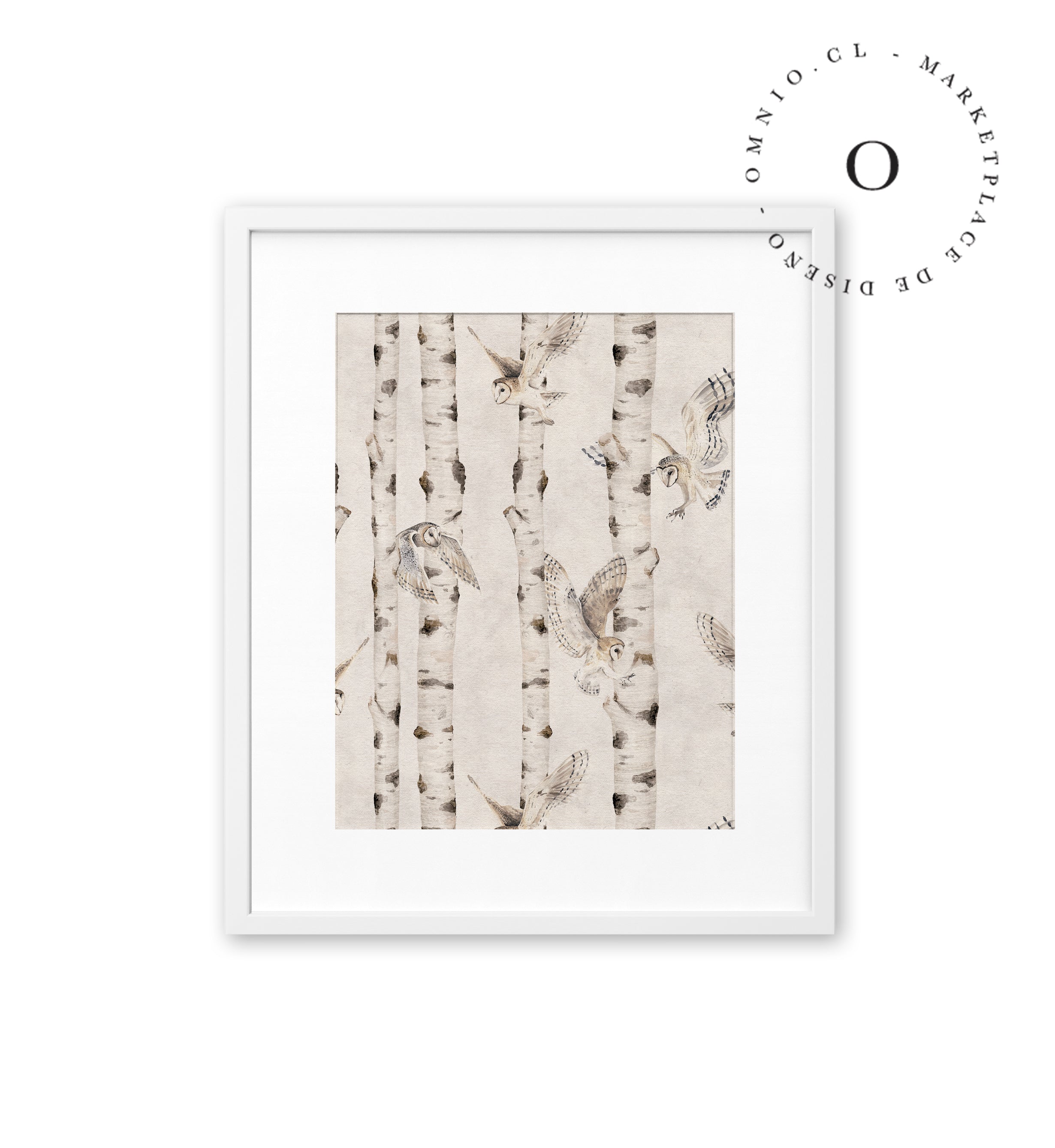 Birch And Owls White Cuadro