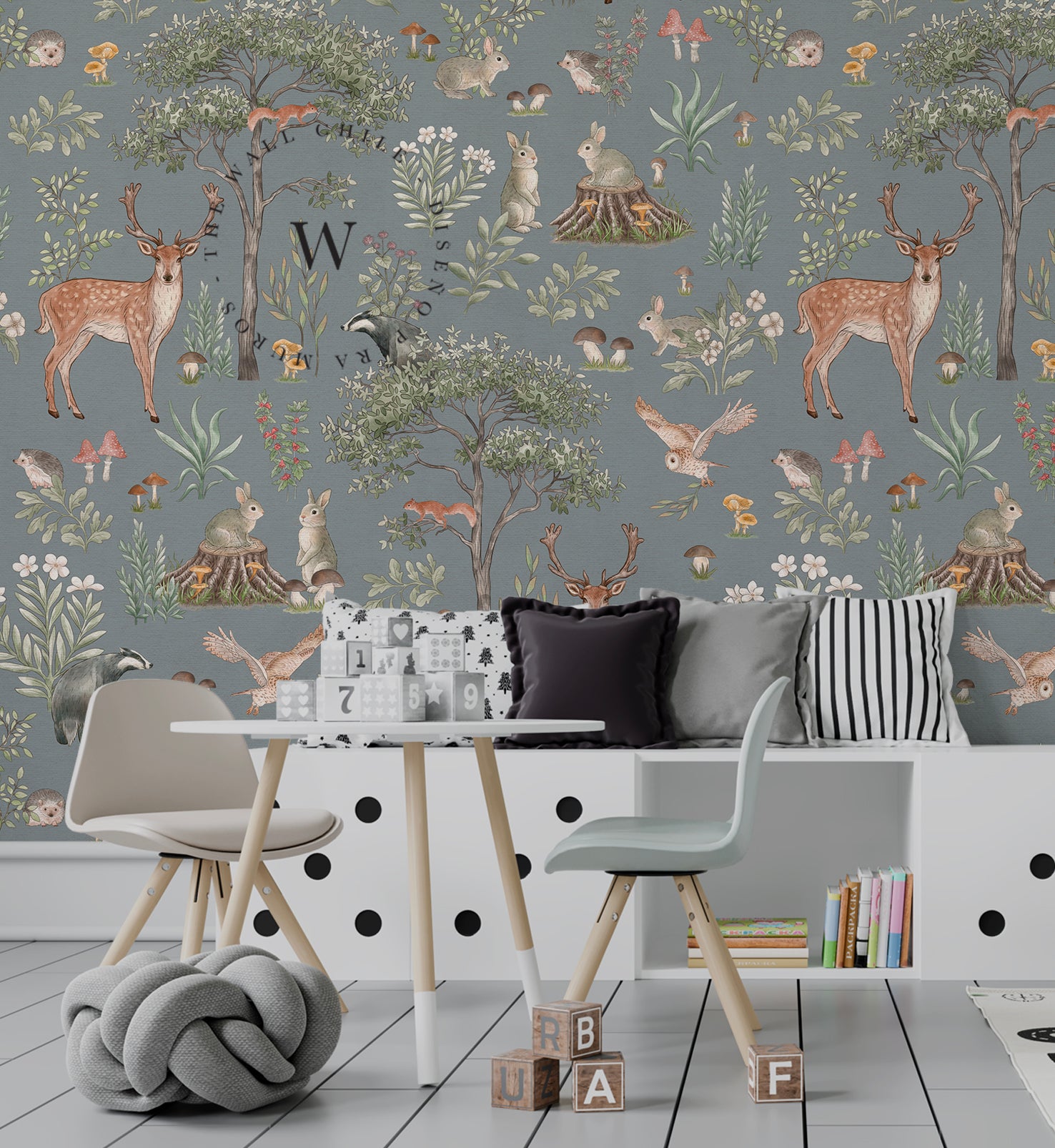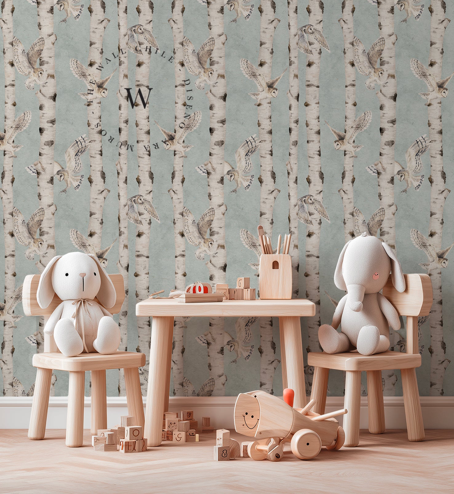 Birch And Owls Blue