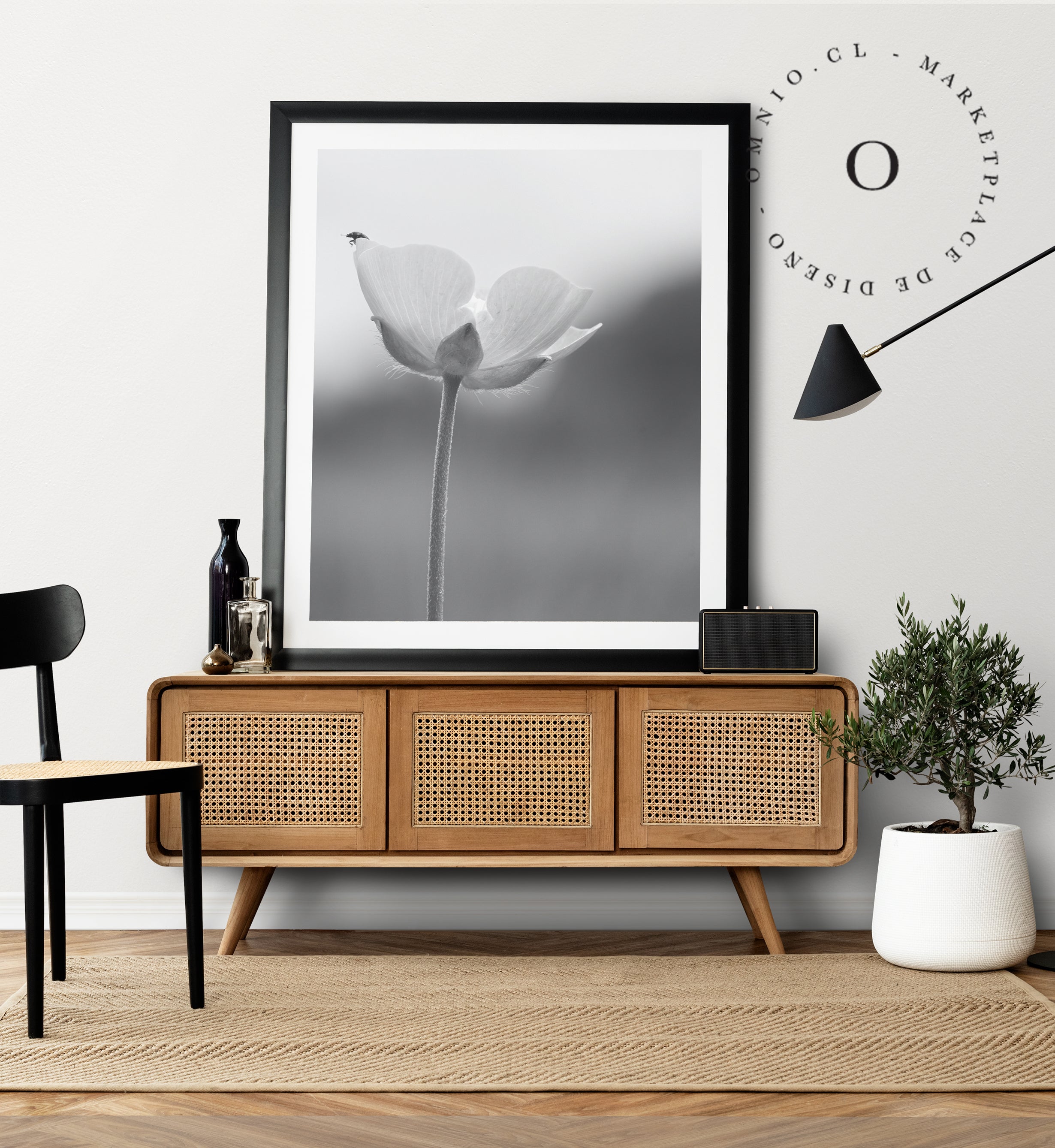 Chinita y Flor Black and White Cuadro