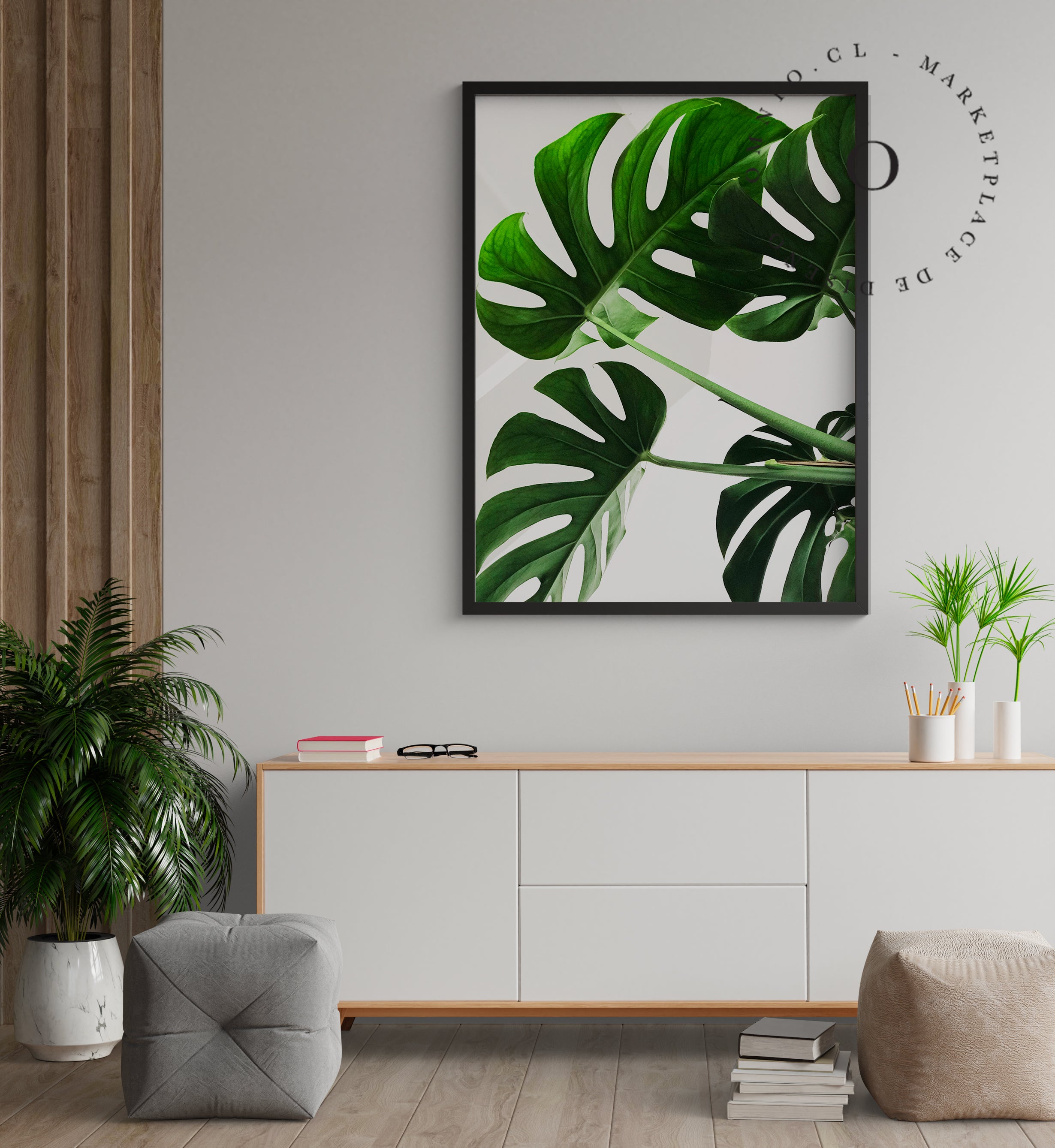 Marco de madera de 2 cm y vidrio de 2mm.