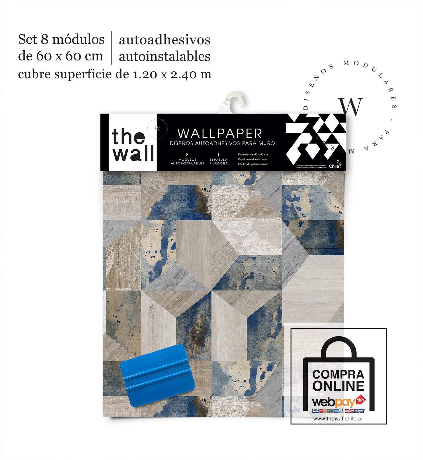 2. Set de Módulos: Módulos adhesivos y auto instalable de 60 x 60 cm que forman un patrón mayor de 1,2 x 2,4 mts (2,44 m2). Con paleta 3M para su perfecta aplicación.