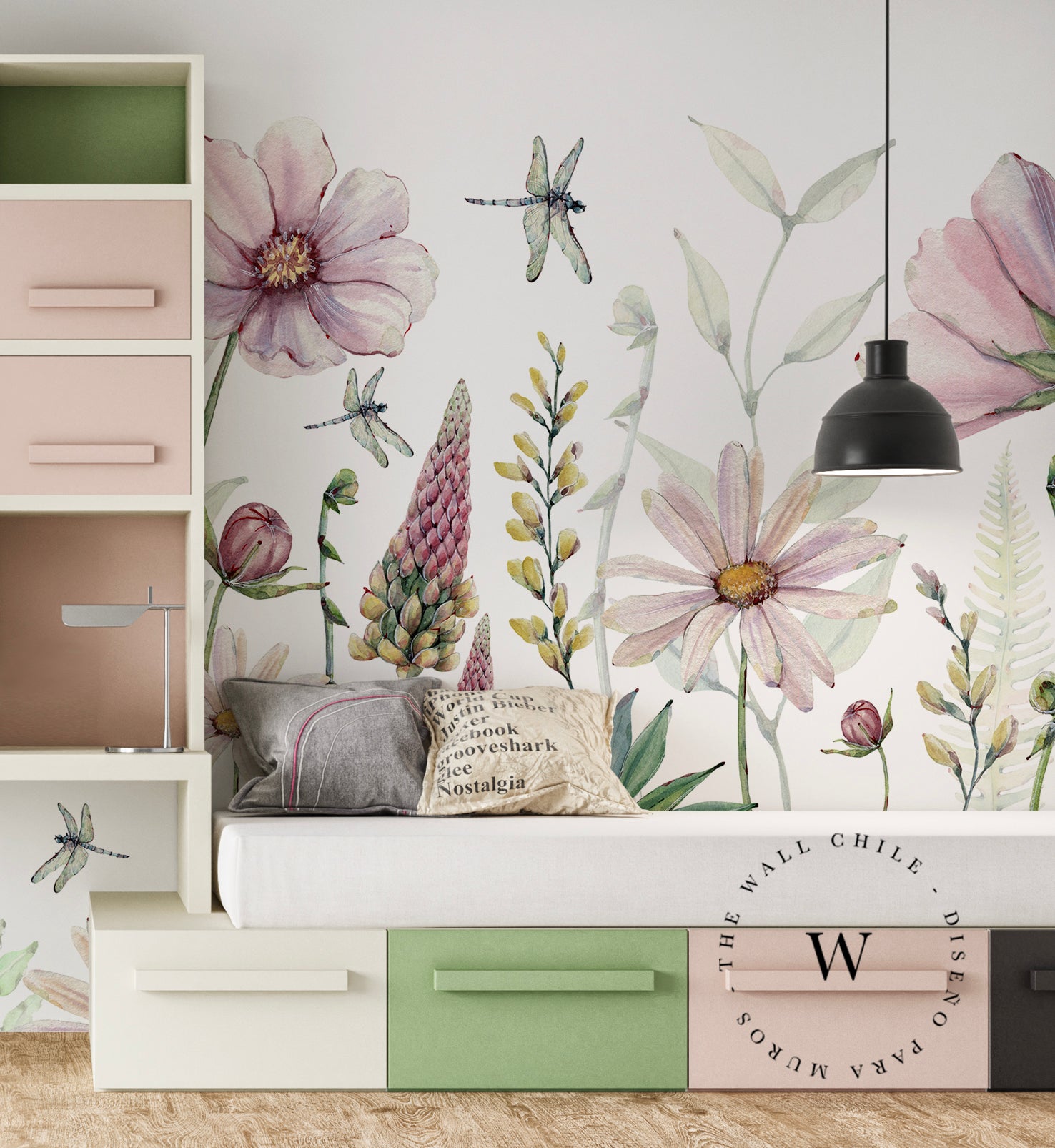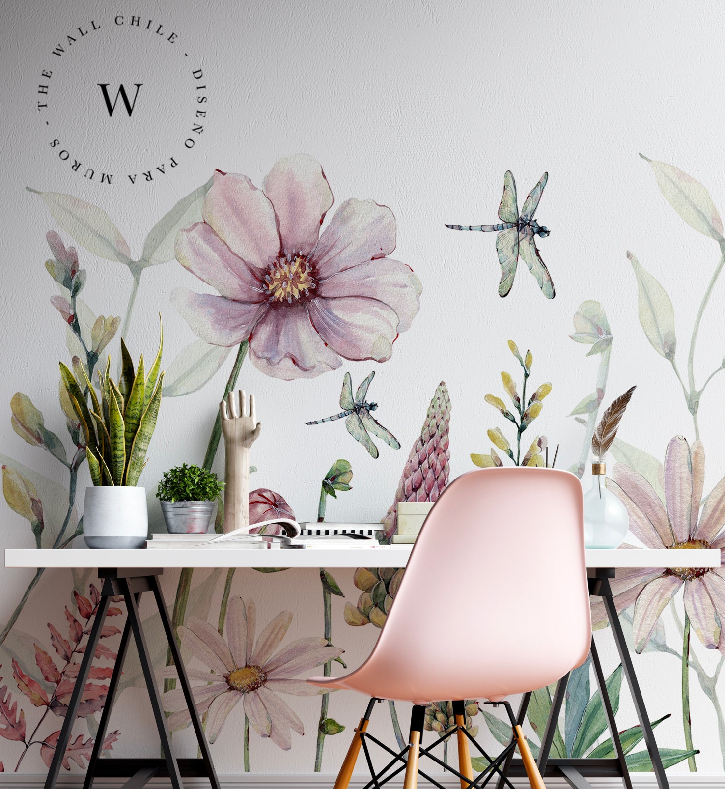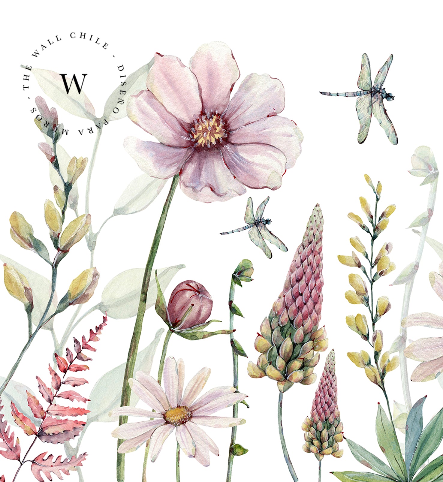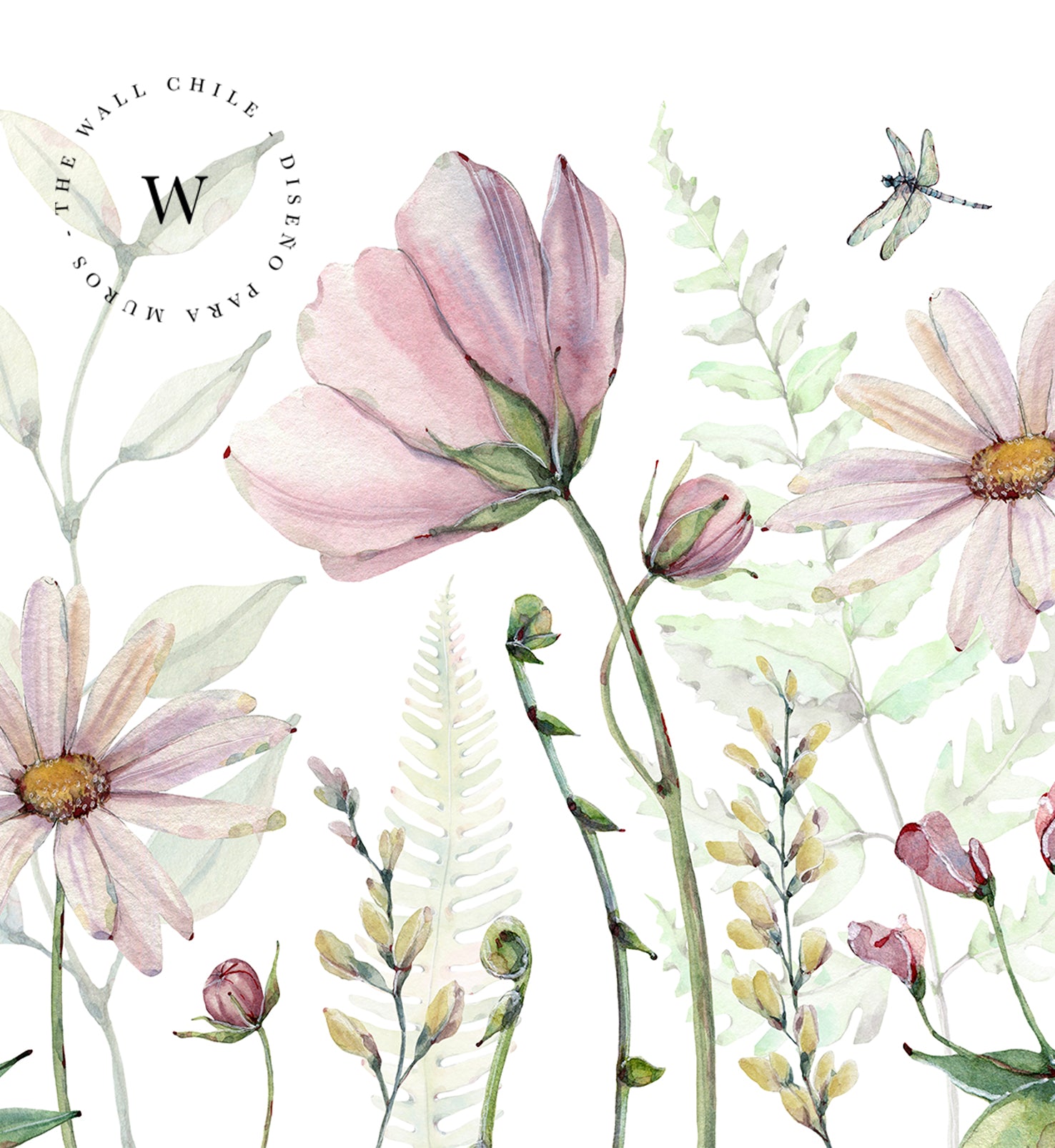 Fabulous Flowers es un papel mural inspirado en los campos silvestres en flor, donde cada pétalo y hoja cobra vida a través de delicadas pinceladas en acuarela. Su composición de flores en tonos rosados, lilas y verdes suaves transmite una sensación de ligereza, armonía y romanticismo moderno. Este diseño es perfecto para dormitorios, salas de estar o habitaciones infantiles, creando una atmósfera serena y natural, como un jardín en movimiento. Las libélulas y flores abiertas aportan dinamismo, mientras que el fondo blanco otorga luz y amplitud a los espacios.