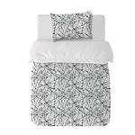 8. Funda de plumón 1 Plaza 150 x 240 cm: Funda plumón, diseño por una cara, reverso liso con cierre invisible en la parte inferior + 1 funda de almohada 70 x 50 cm con cierre invisible. No incluye rellenos.