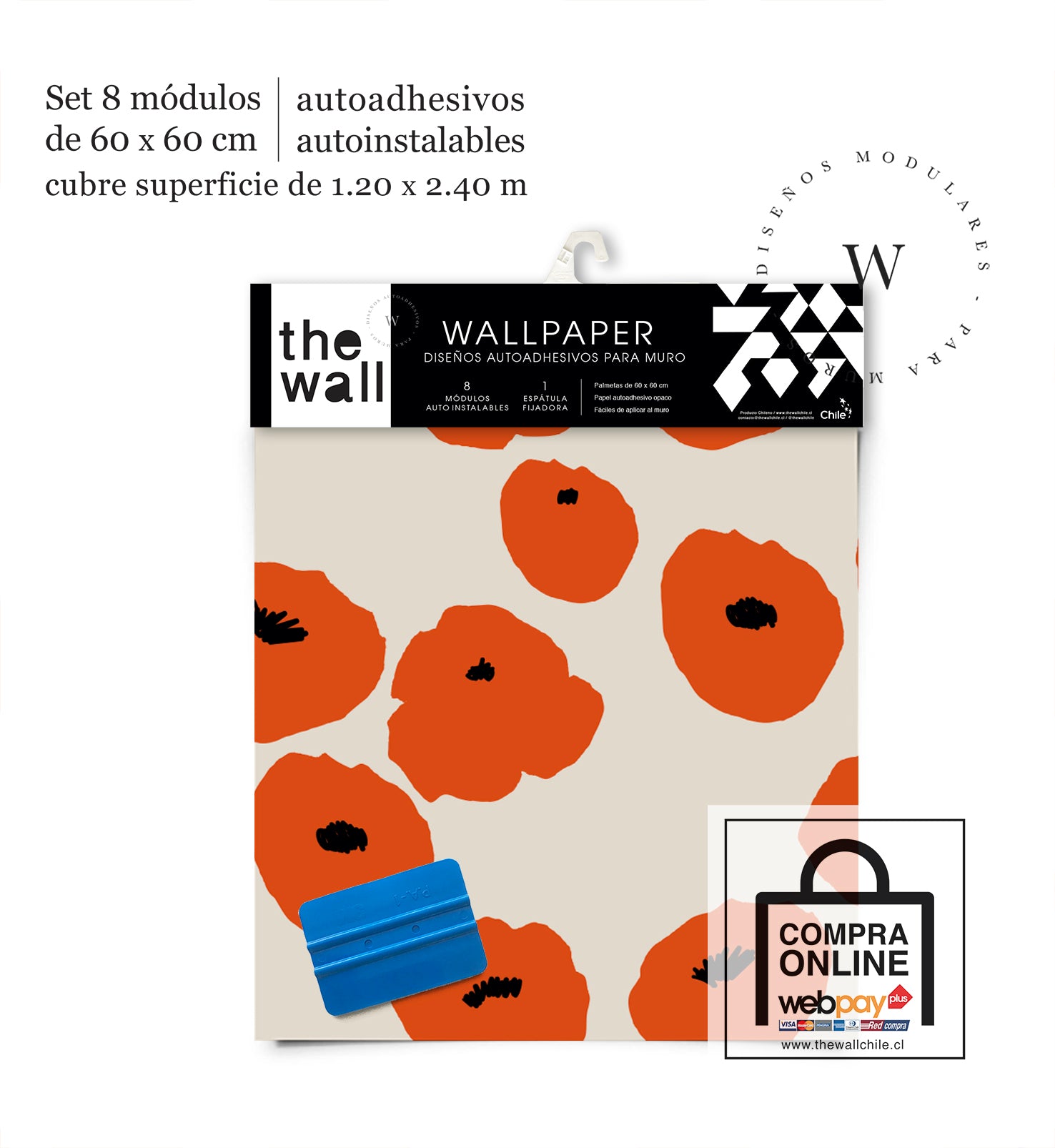 2. Set de Módulos: Módulos adhesivos y auto instalable de 60 x 60 cm que forman un patrón mayor de 1,2 x 2,4 mts (2,44 m2). Con paleta 3M para su perfecta aplicación.