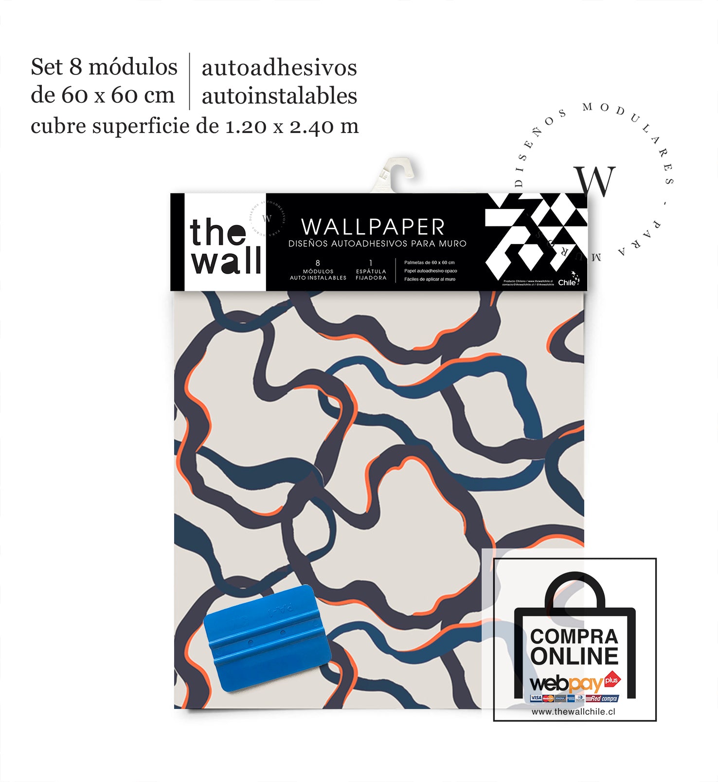 2. Set de Módulos: Módulos adhesivos y auto instalable de 60 x 60 cm que forman un patrón mayor de 1,2 x 2,4 mts (2,44 m2). Con paleta 3M para su perfecta aplicación.