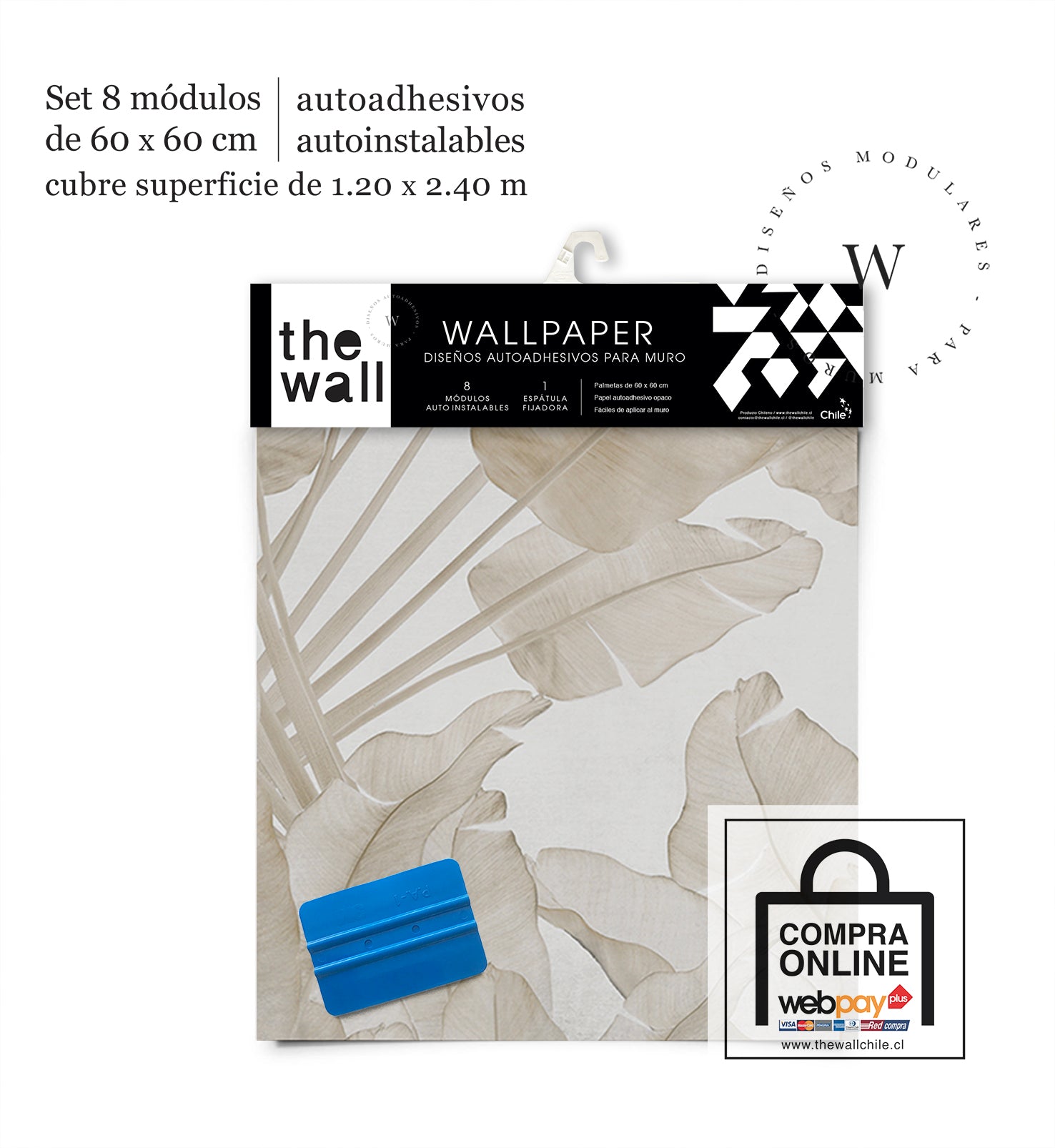 2. Set de Módulos: Módulos adhesivos y auto instalable de 60 x 60 cm que forman un patrón mayor de 1,2 x 2,4 mts (2,44 m2). Con paleta 3M para su perfecta aplicación.