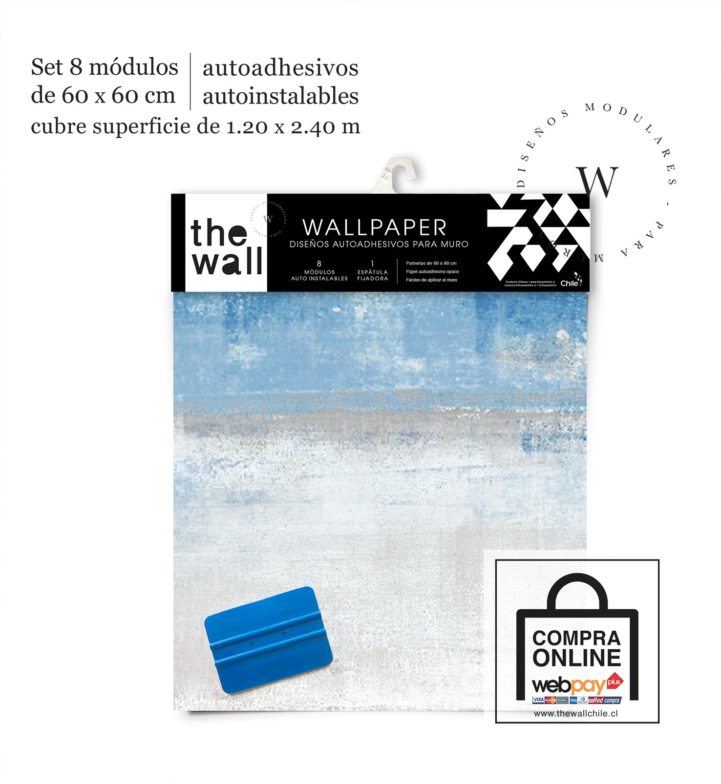 2. Set de Módulos: Módulos adhesivos y auto instalable de 60 x 60 cm que forman un patrón mayor de 1,2 x 2,4 mts (2,44 m2). Con paleta 3M para su perfecta aplicación.