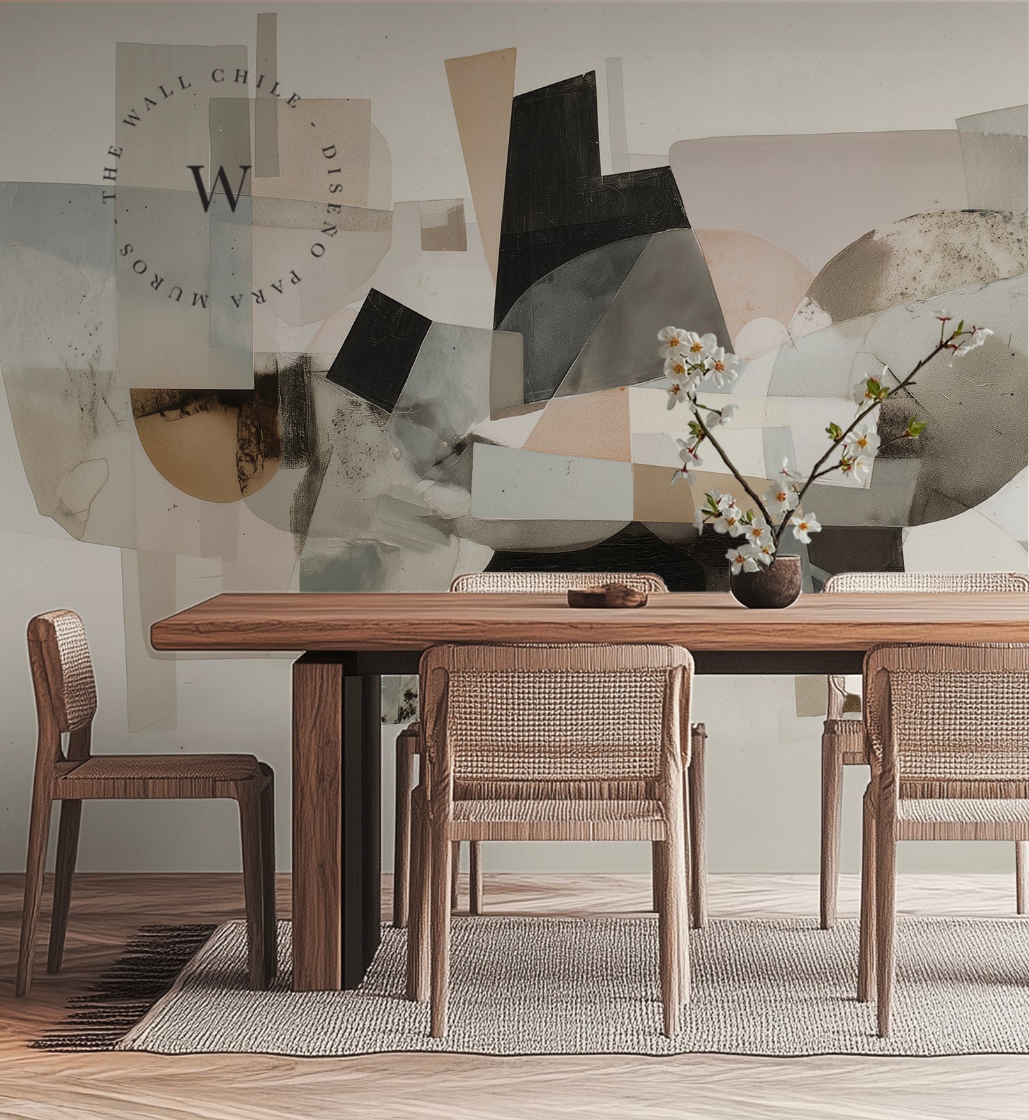 Cada capa visual se integra con sutileza, creando un equilibrio entre lo estructurado y lo orgánico. Ideal para espacios que buscan un toque artístico y sofisticado, como livings, estudios o recibos, este mural aporta profundidad, elegancia y una sensación de calma dinámica.