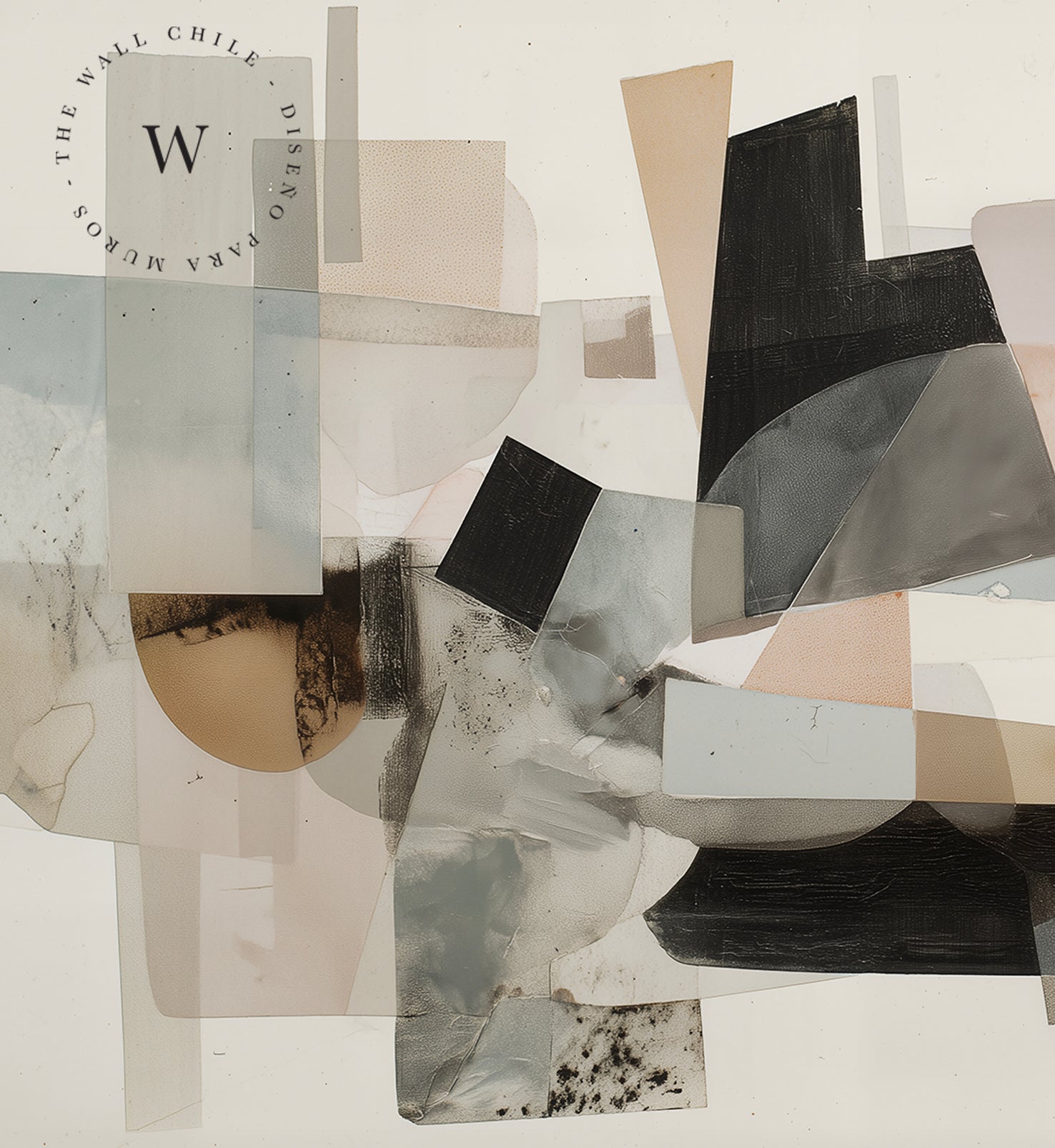 Flow Collage es un diseño artístico de estilo contemporáneo que fusiona geometría, textura y movimiento. Sus formas superpuestas en tonos neutros —beige, gris, negro y arena— evocan la fluidez de un collage moderno pintado a mano.