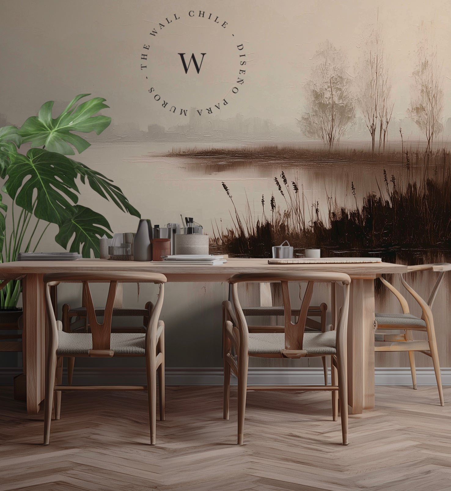 Con una paleta de beige, marrones suaves y grises difuminados, este diseño transmite profundidad, calidez y equilibrio visual, creando una atmósfera envolvente y sofisticada.