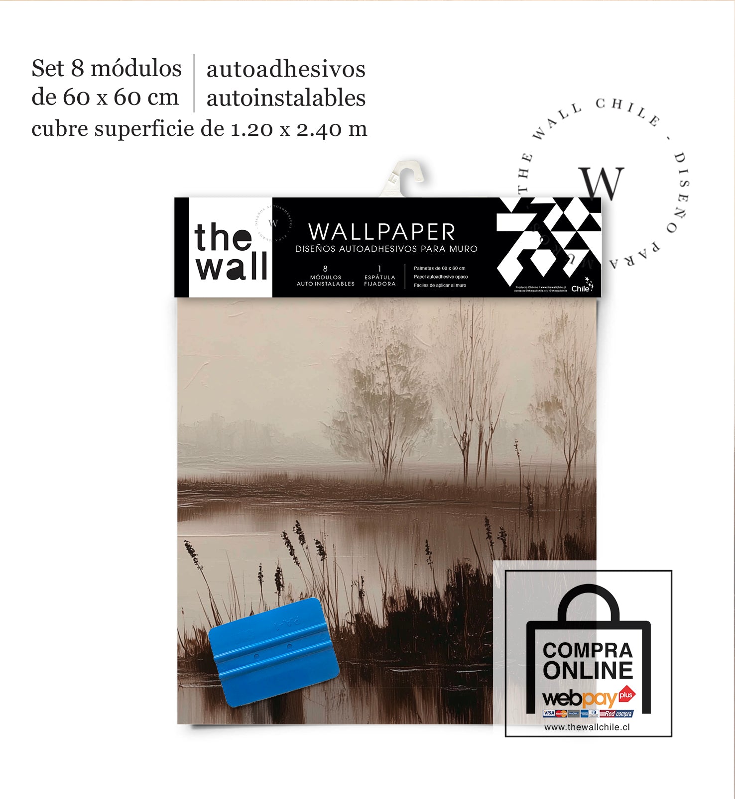 2. Set de Módulos: Módulos adhesivos y auto instalable de 60 x 60 cm que forman un patrón mayor de 1,2 x 2,4 mts (2,44 m2). Con paleta 3M para su perfecta aplicación.