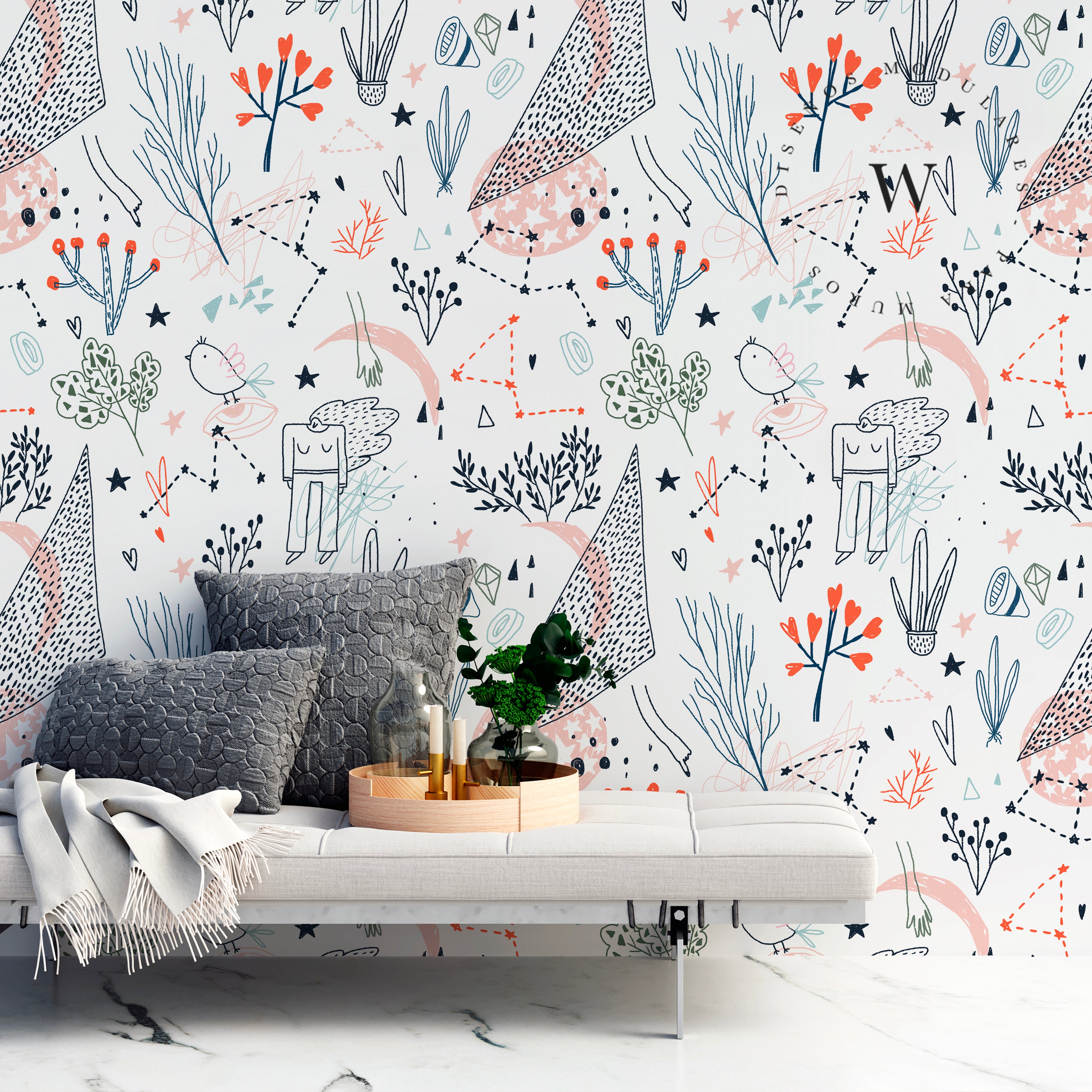 2. Papel Mural Texturado: Papel mural base blanca mate textura lino y de alta calidad. No es adhesivo. Mayor gramaje del papel.
