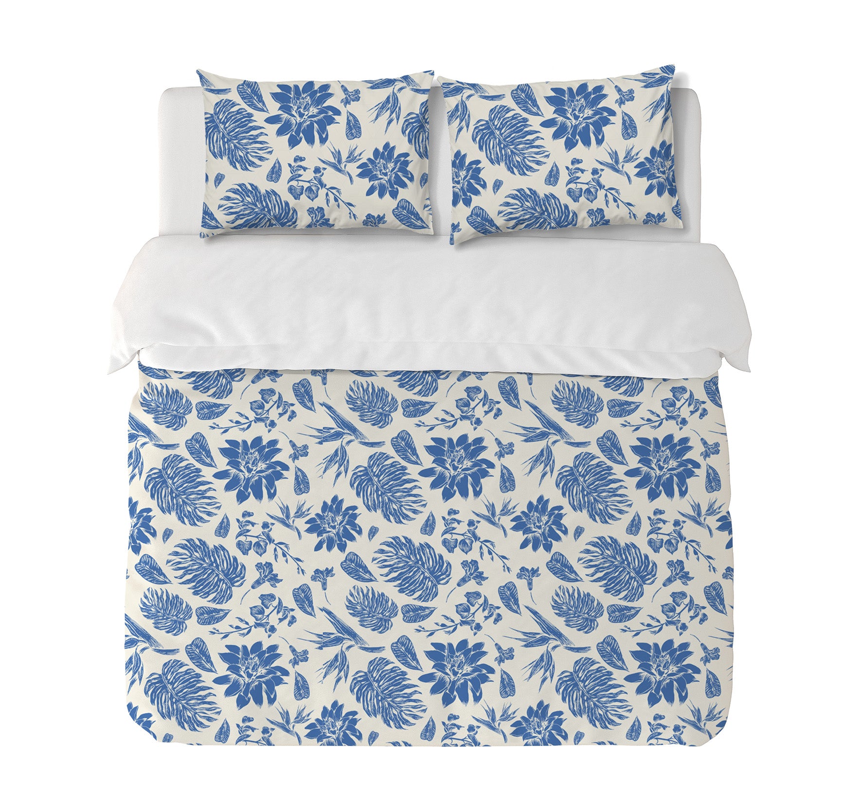 10. Funda de plumón Queen 240 x 245 cm: Funda plumón, diseño por una cara, reverso liso con cierre invisible en la parte inferior + 2 fundas de almohadas 70 x 50 cm con cierre invisible. No incluye rellenos.