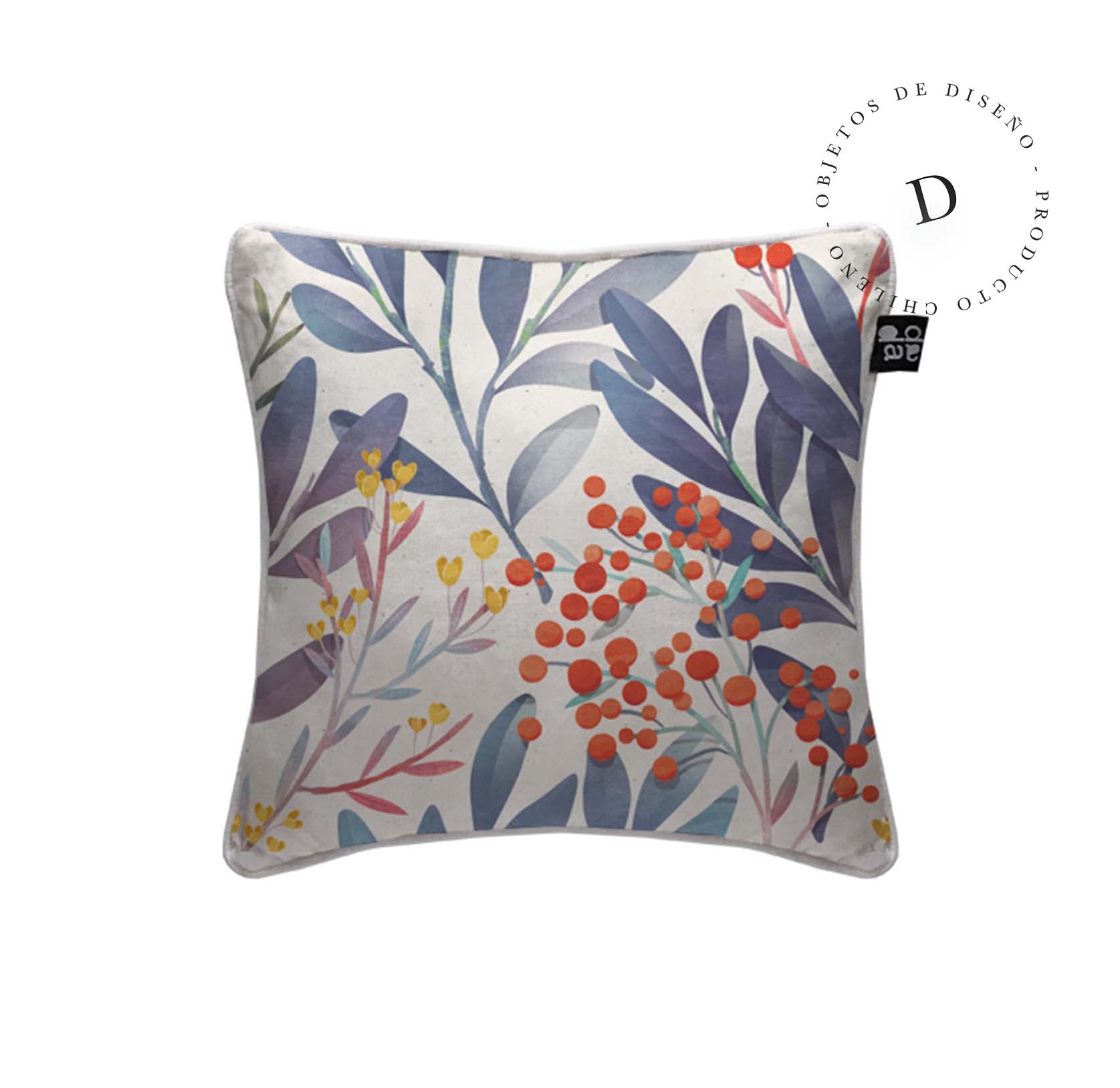 1. Cojín 45 x 45 cm: Diseño por ambos lados, con cordón perimetral, cierre invisible, relleno algodón sintético removible.