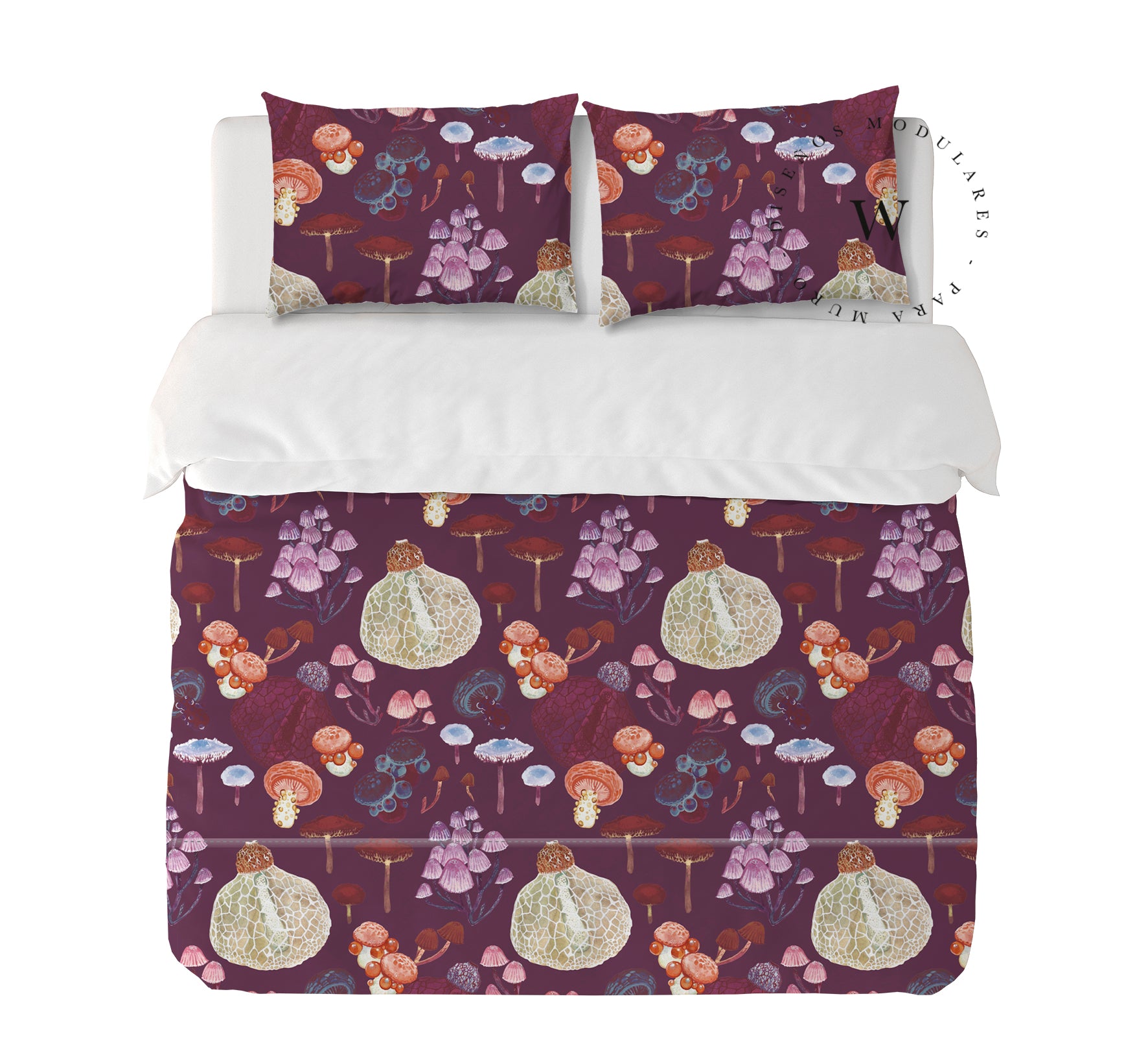 10. Funda de plumón Queen 240 x 245 cm: Funda plumón, diseño por una cara, reverso liso con cierre invisible en la parte inferior + 2 fundas de almohadas 70 x 50 cm con cierre invisible. No incluye rellenos.