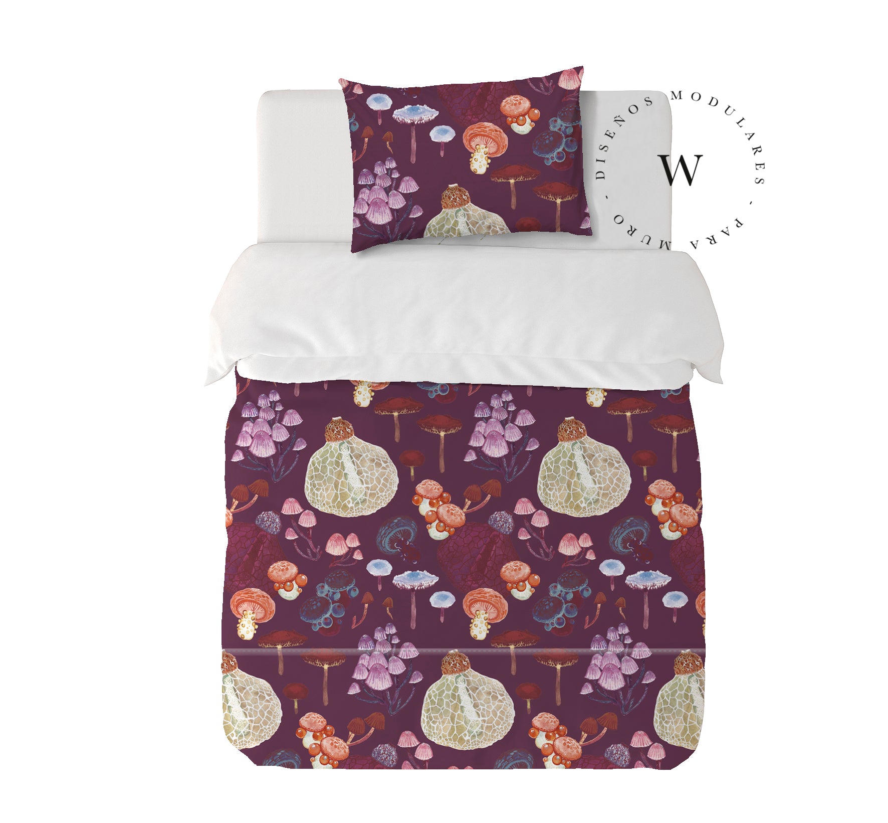 8. Funda de plumón 1 Plaza 150 x 240 cm: Funda plumón, diseño por una cara, reverso liso con cierre invisible en la parte inferior + 1 funda de almohada 70 x 50 cm con cierre invisible. No incluye rellenos.