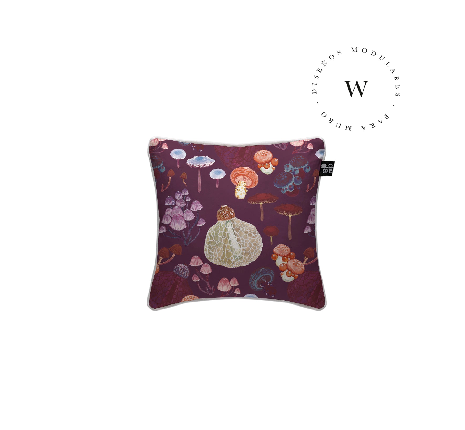 1. Cojín 45 x 45 cm: Diseño por ambos lados, con cordón perimetral, cierre invisible, relleno algodón sintético removible.