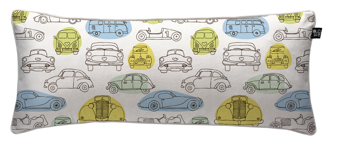 3. Cojín 70 x 35 cm: Diseño por ambos lados, con cordón perimetral, cierre invisible, relleno algodón sintético removible.