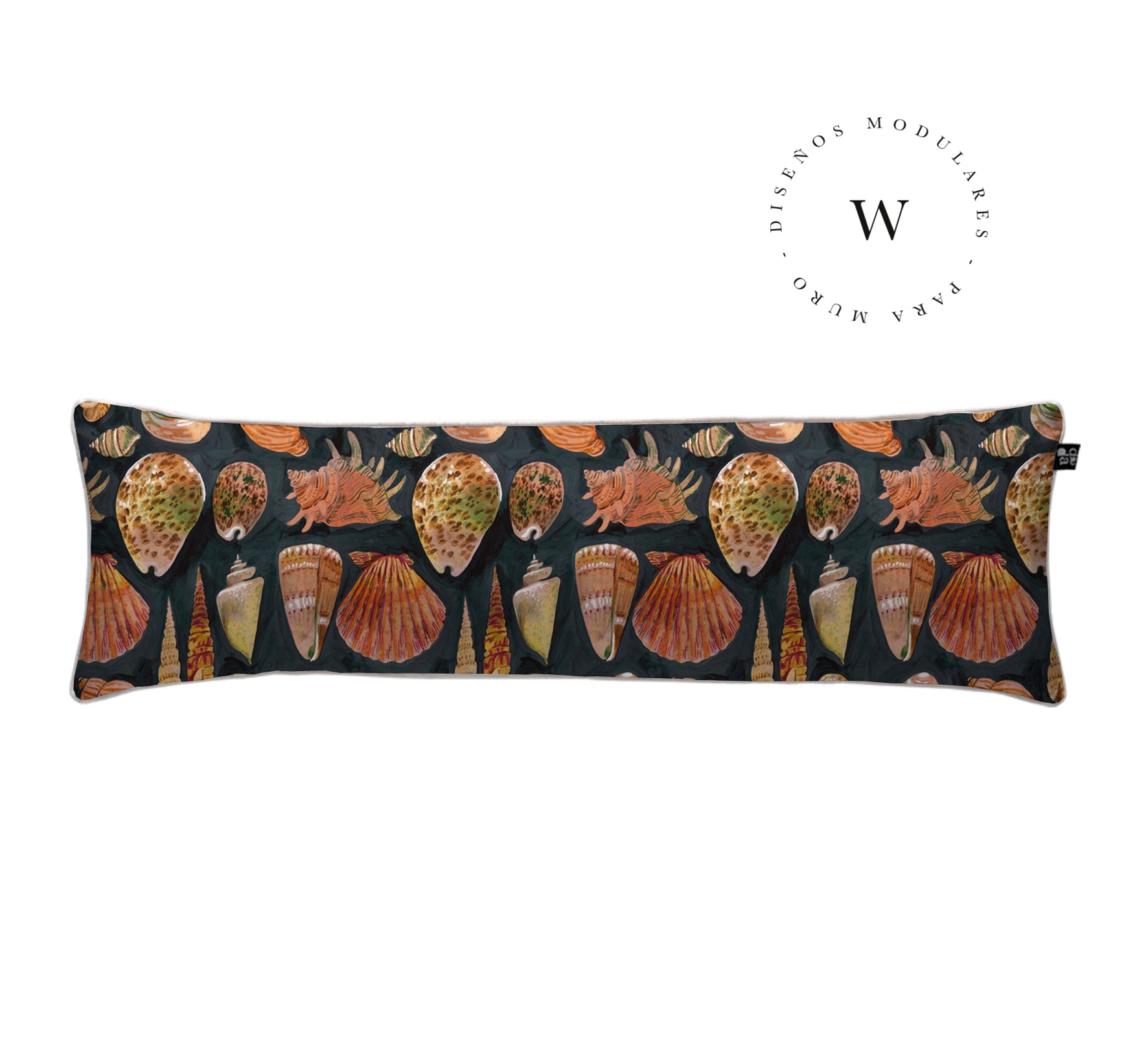 5. Cojín 120 x 35 cm: Diseño por ambos lados, con cordón perimetral, cierre invisible, relleno algodón sintético removible.