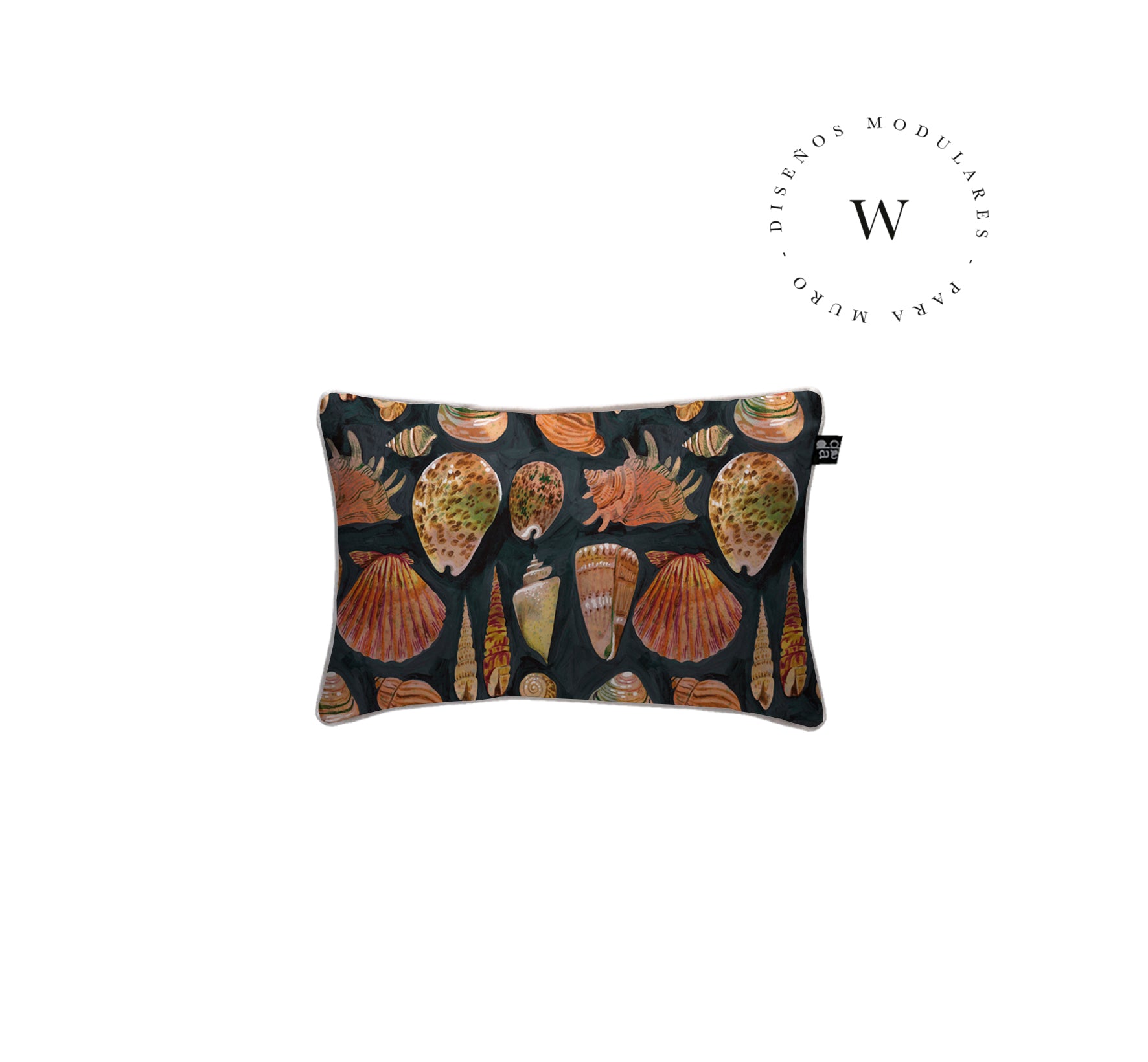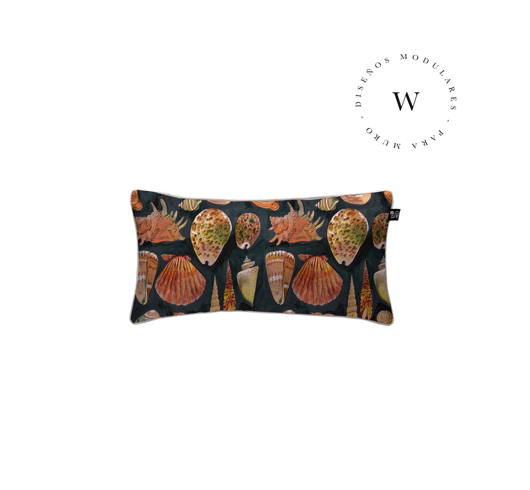 2. Cojín 60 x 40 cm: Diseño por ambos lados, con cordón perimetral, cierre invisible, relleno algodón sintético removible.
