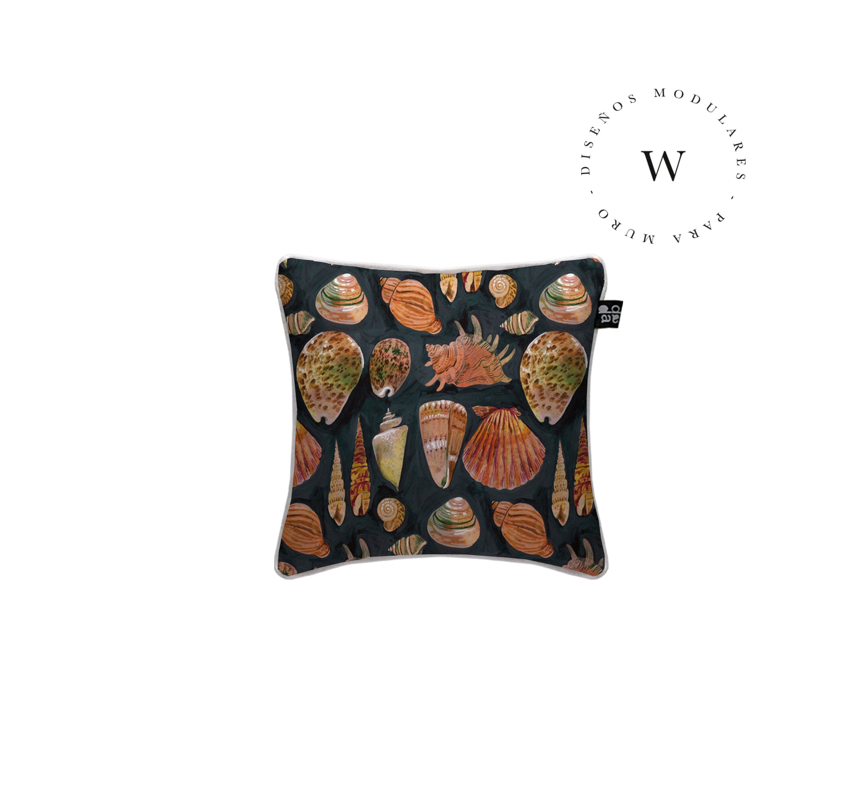 1. Cojín 45 x 45 cm: Diseño por ambos lados, con cordón perimetral, cierre invisible, relleno algodón sintético removible.