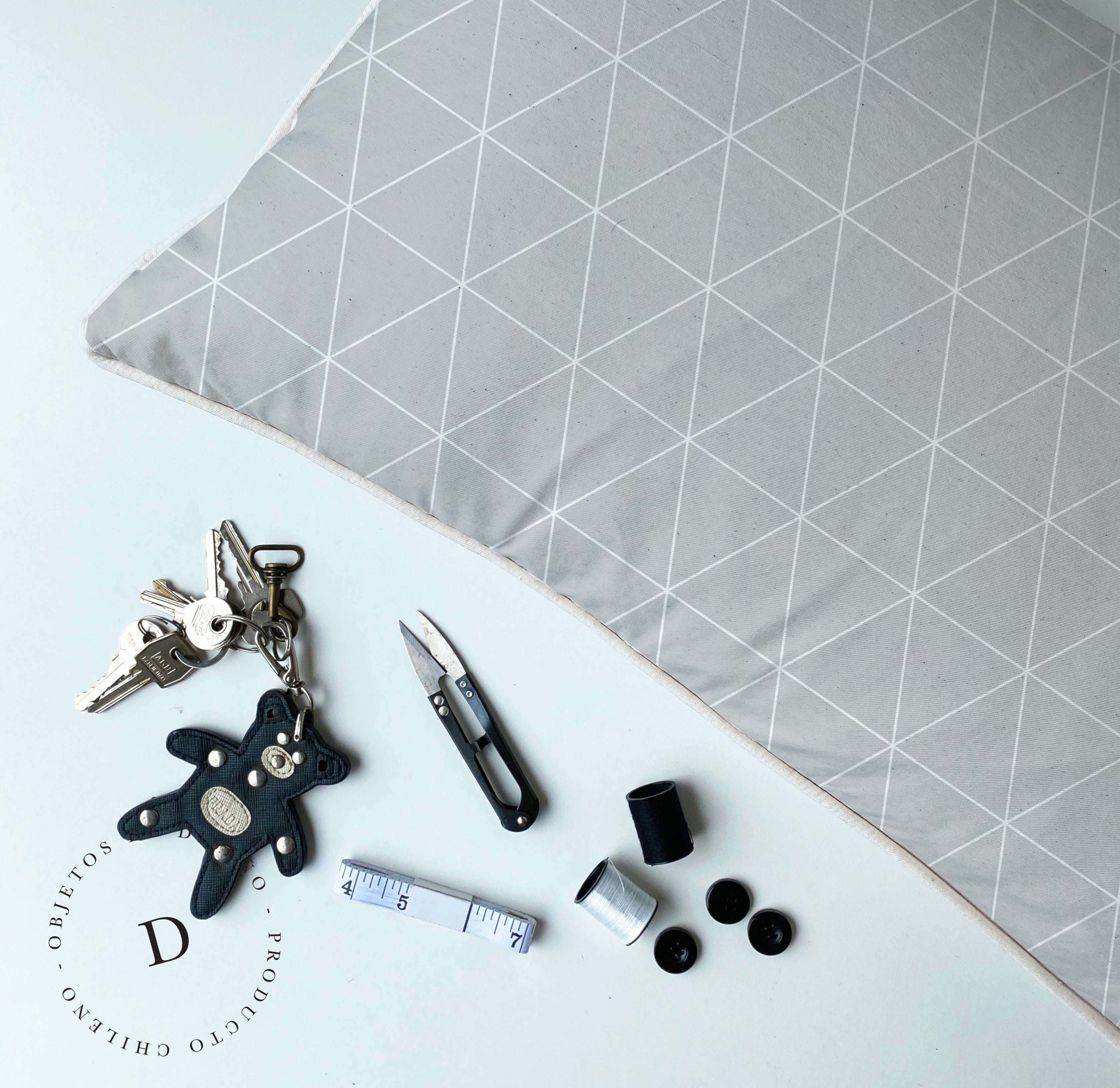 1. Cojín 45 x 45 cm: Diseño por ambos lados, con cordón perimetral, cierre invisible, relleno algodón sintético removible.