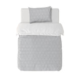 8. Funda de plumón 1 Plaza 150 x 240 cm: Funda plumón, diseño por una cara, reverso liso con cierre invisible en la parte inferior + 1 funda de almohada 70 x 50 cm con cierre invisible. No incluye rellenos.