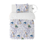 8. Funda de plumón 1 Plaza 150 x 240 cm: Funda plumón, diseño por una cara, reverso liso con cierre invisible en la parte inferior + 1 funda de almohada 70 x 50 cm con cierre invisible. No incluye rellenos.