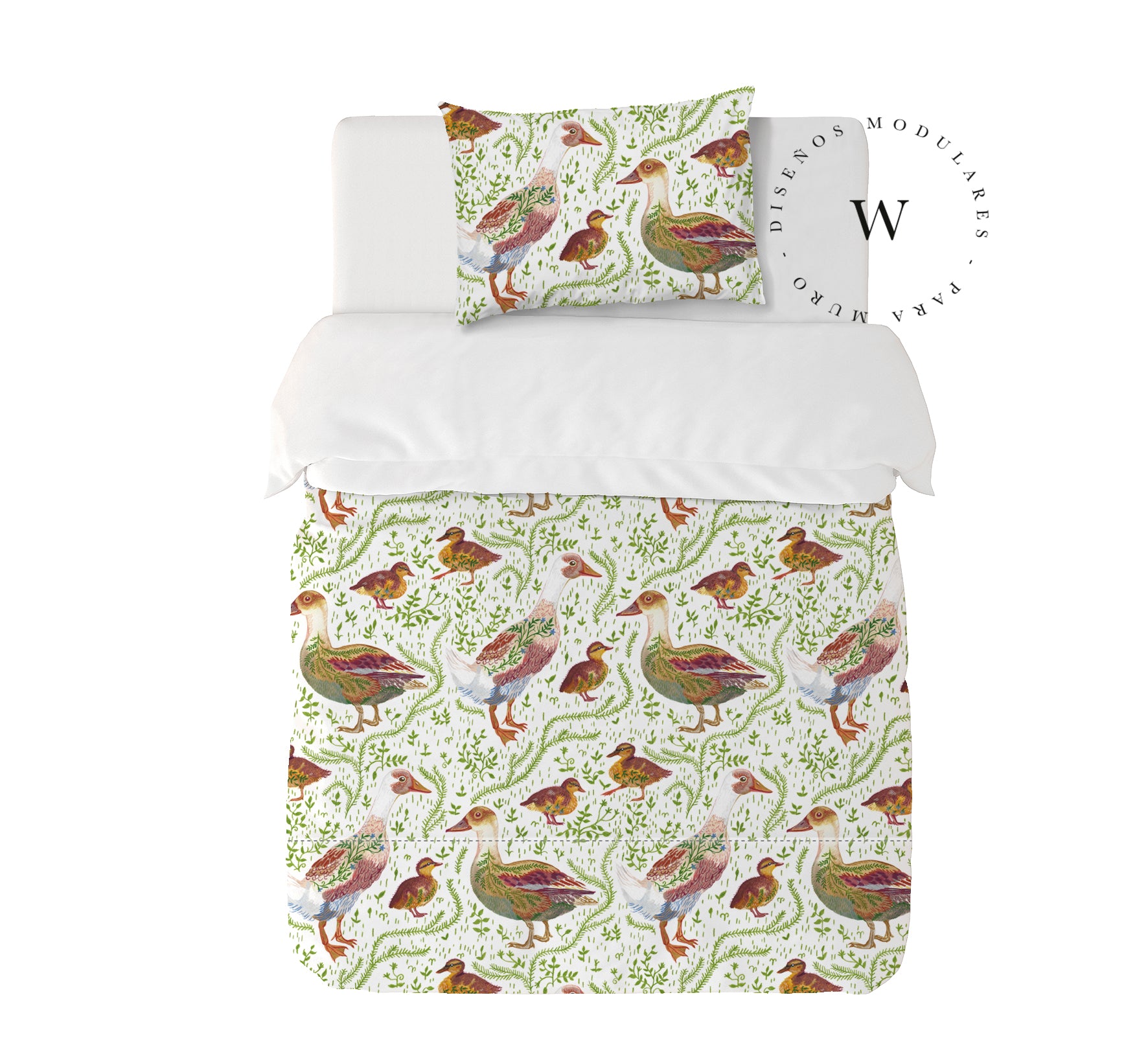8. Funda de plumón 1 Plaza 150 x 240 cm: Funda plumón, diseño por una cara, reverso liso con cierre invisible en la parte inferior + 1 funda de almohada 70 x 50 cm con cierre invisible. No incluye rellenos.