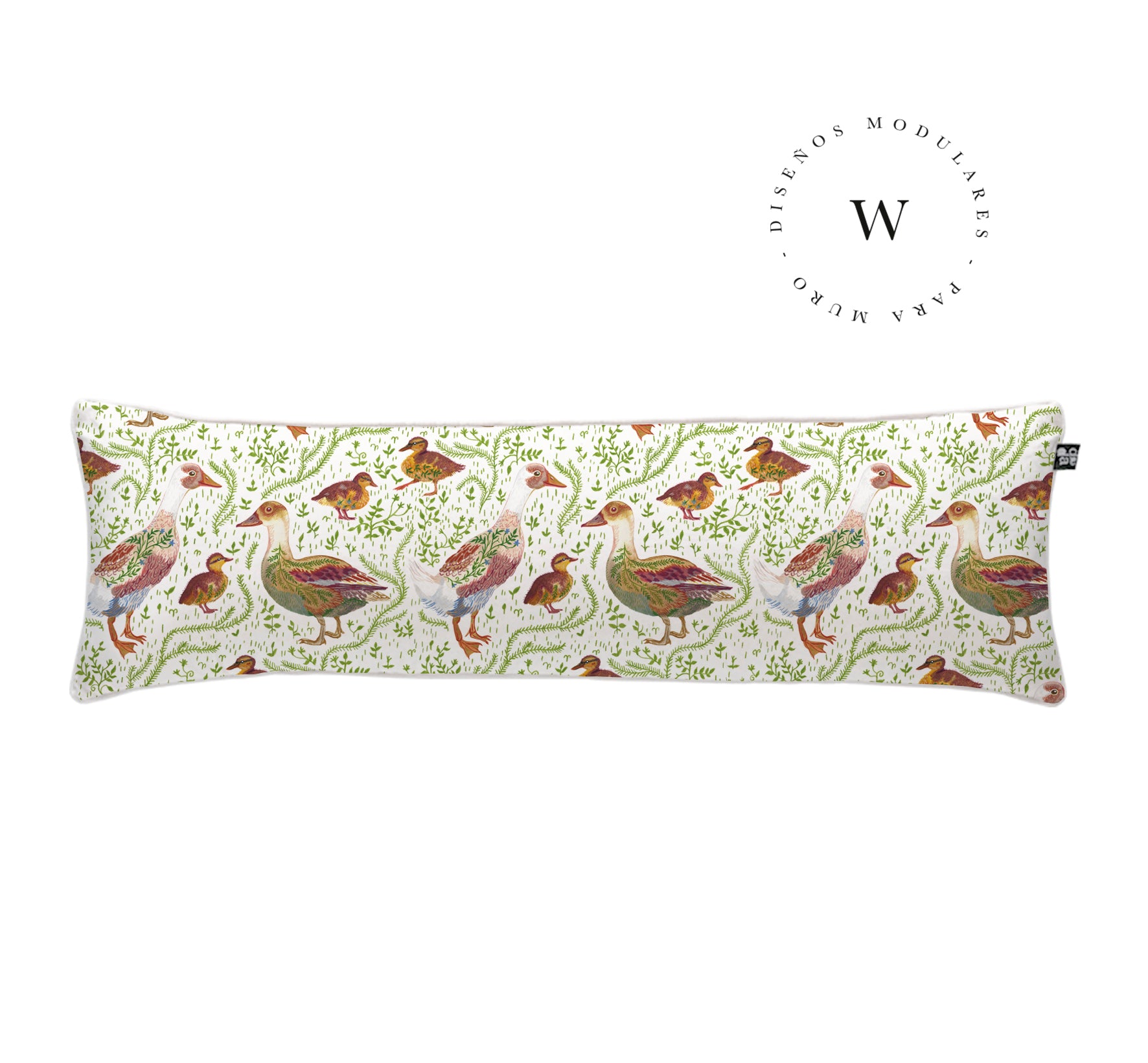 5. Cojín 120 x 35 cm: Diseño por ambos lados, con cordón perimetral, cierre invisible, relleno algodón sintético removible.