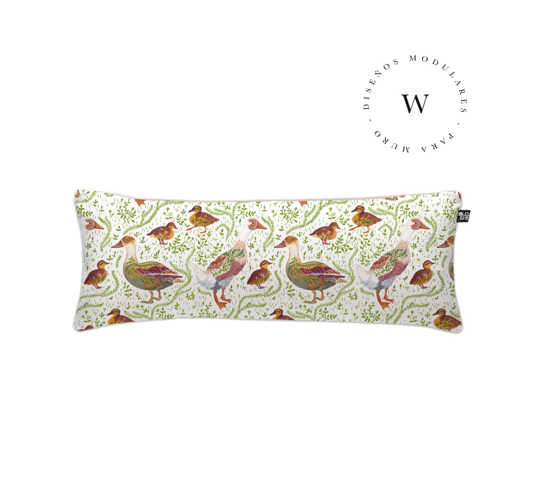 4. Cojín 90 x 35 cm: Diseño por ambos lados, con cordón perimetral, cierre invisible, relleno algodón sintético removible.
