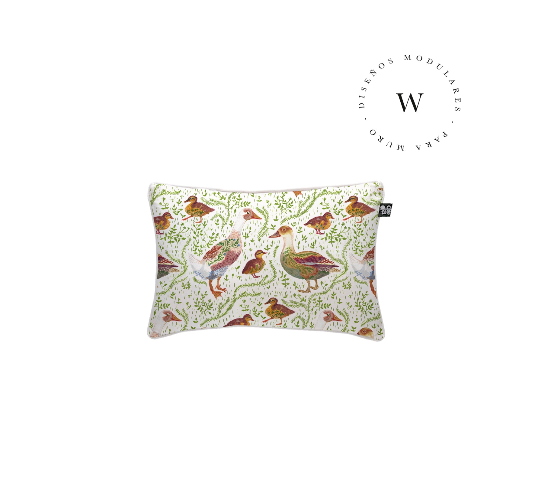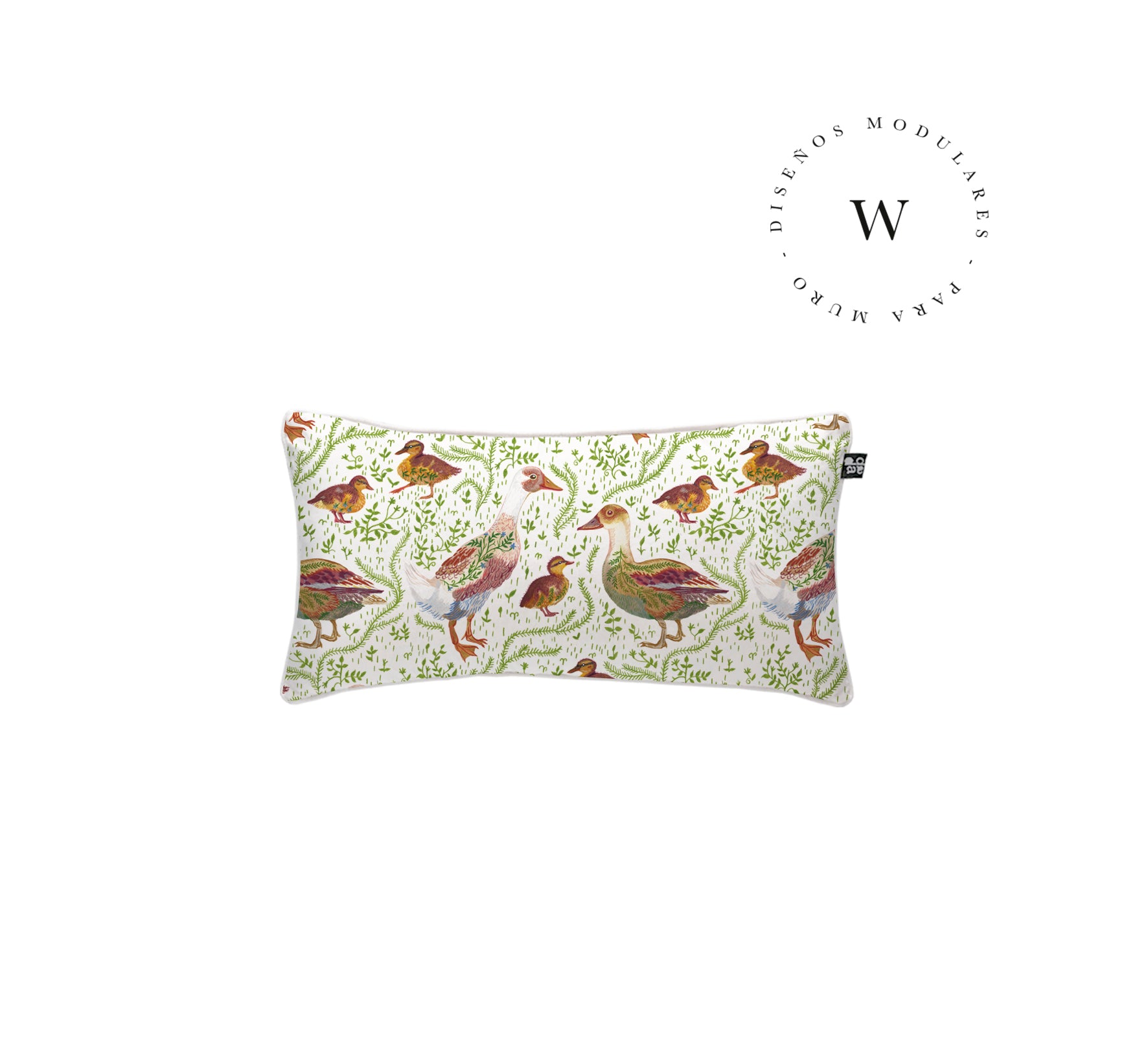 2. Cojín 60 x 40 cm: Diseño por ambos lados, con cordón perimetral, cierre invisible, relleno algodón sintético removible.