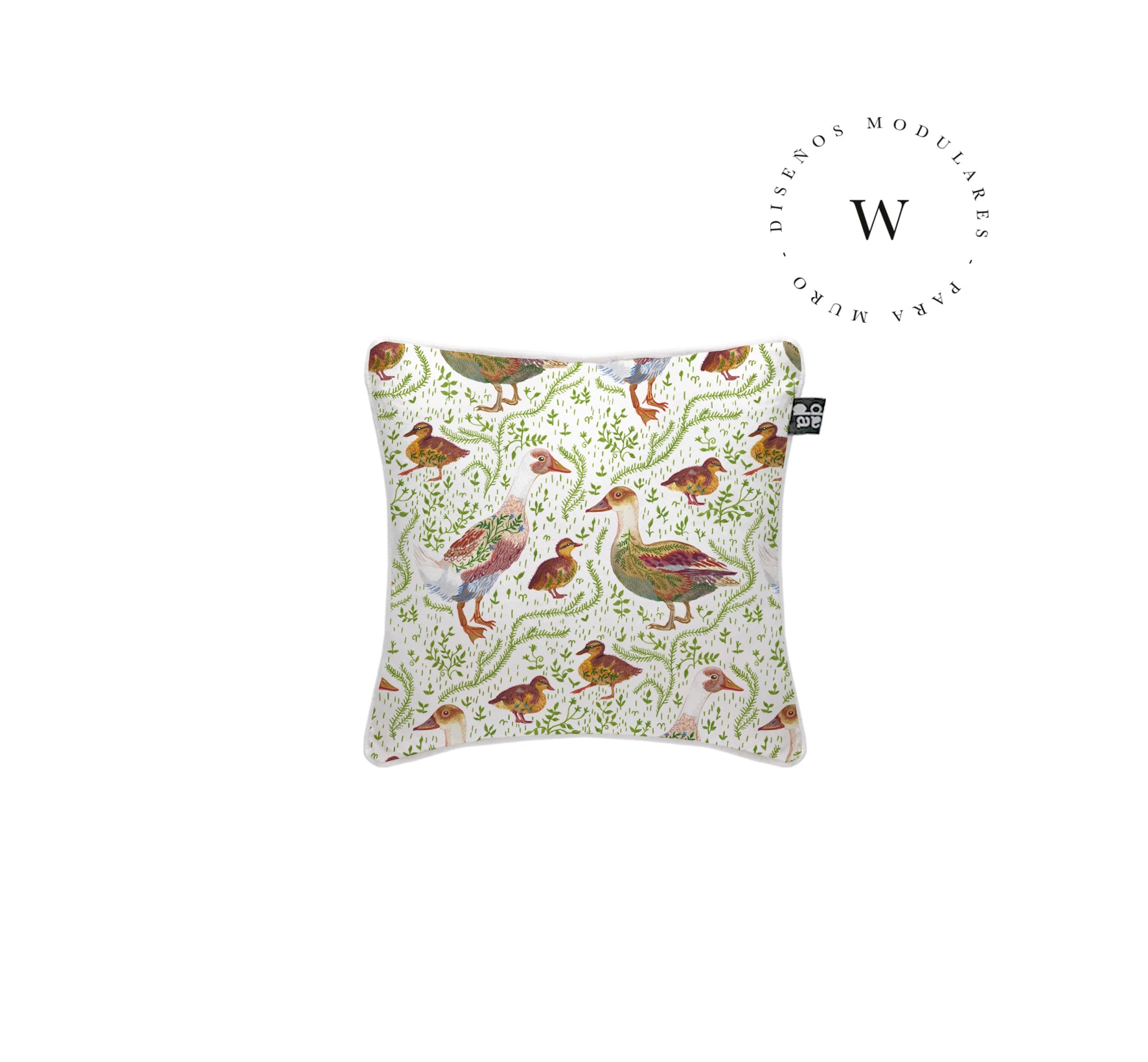 1. Cojín 45 x 45 cm: Diseño por ambos lados, con cordón perimetral, cierre invisible, relleno algodón sintético removible.