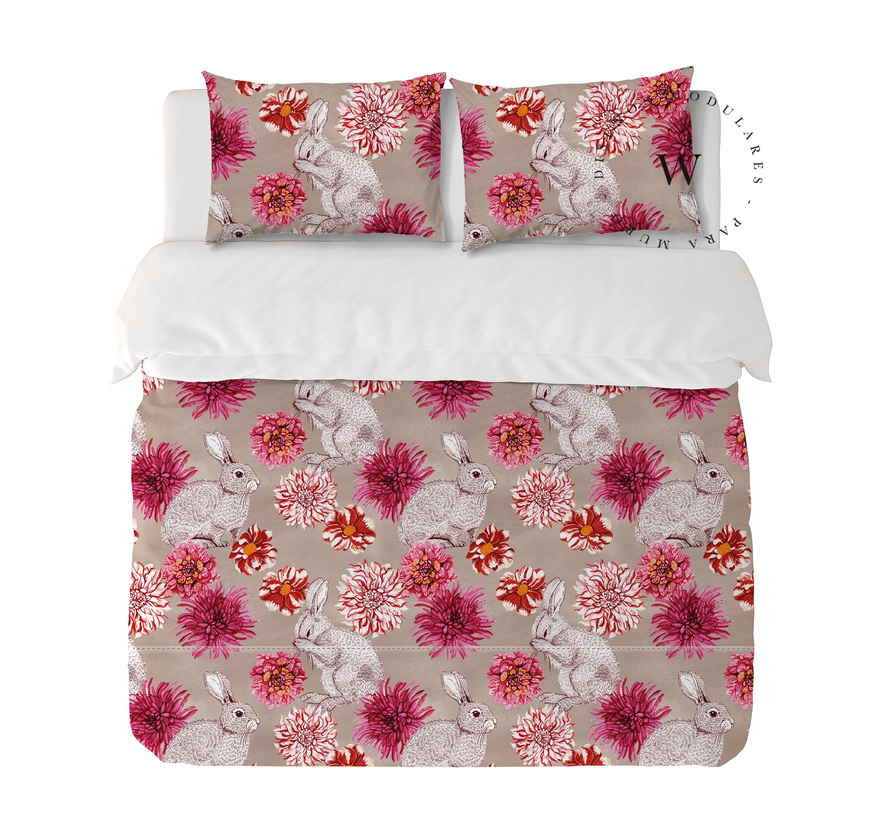 10. Funda de plumón Queen 240 x 245 cm: Funda plumón, diseño por una cara, reverso liso con cierre invisible en la parte inferior + 2 fundas de almohadas 70 x 50 cm con cierre invisible. No incluye rellenos.