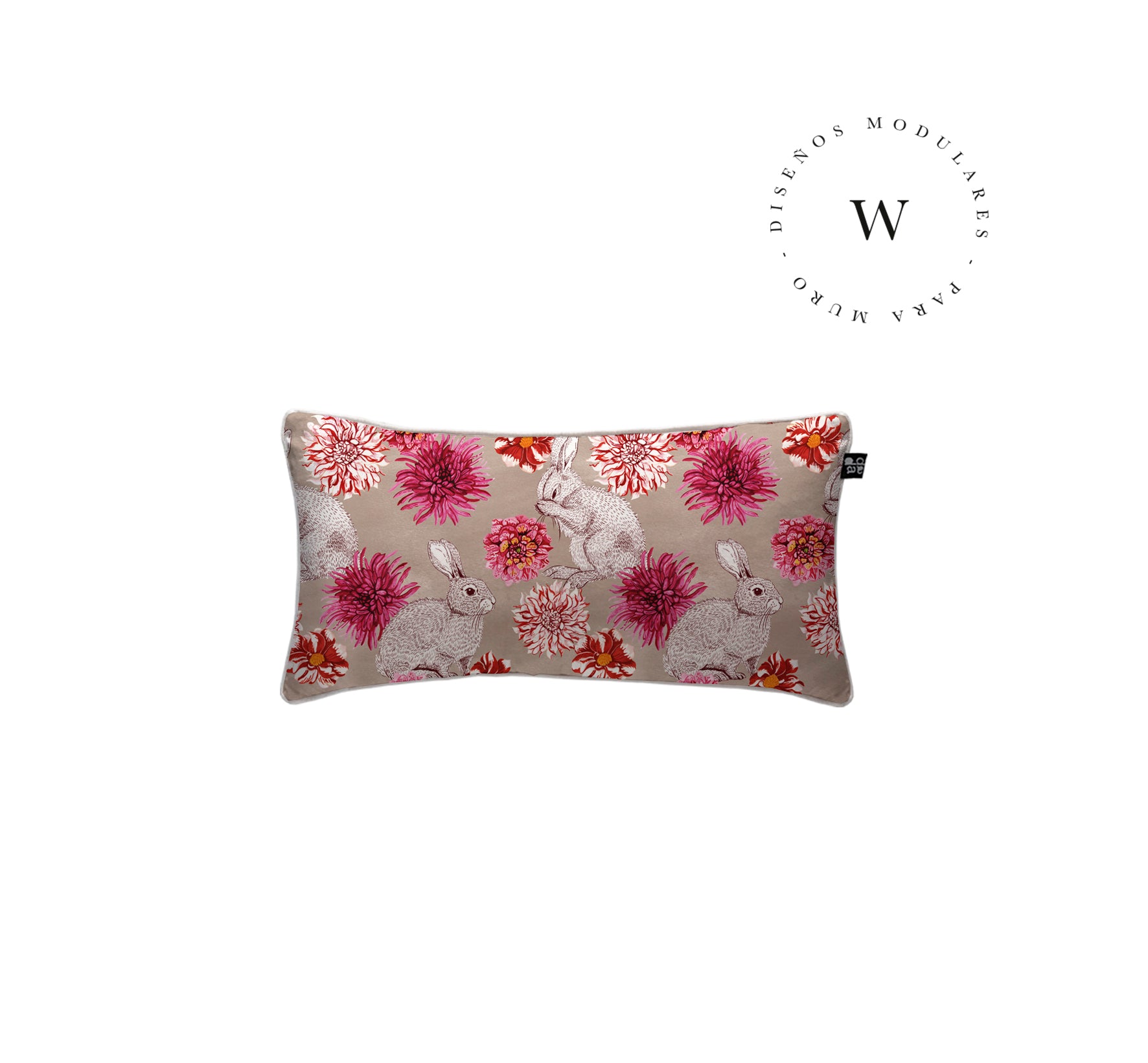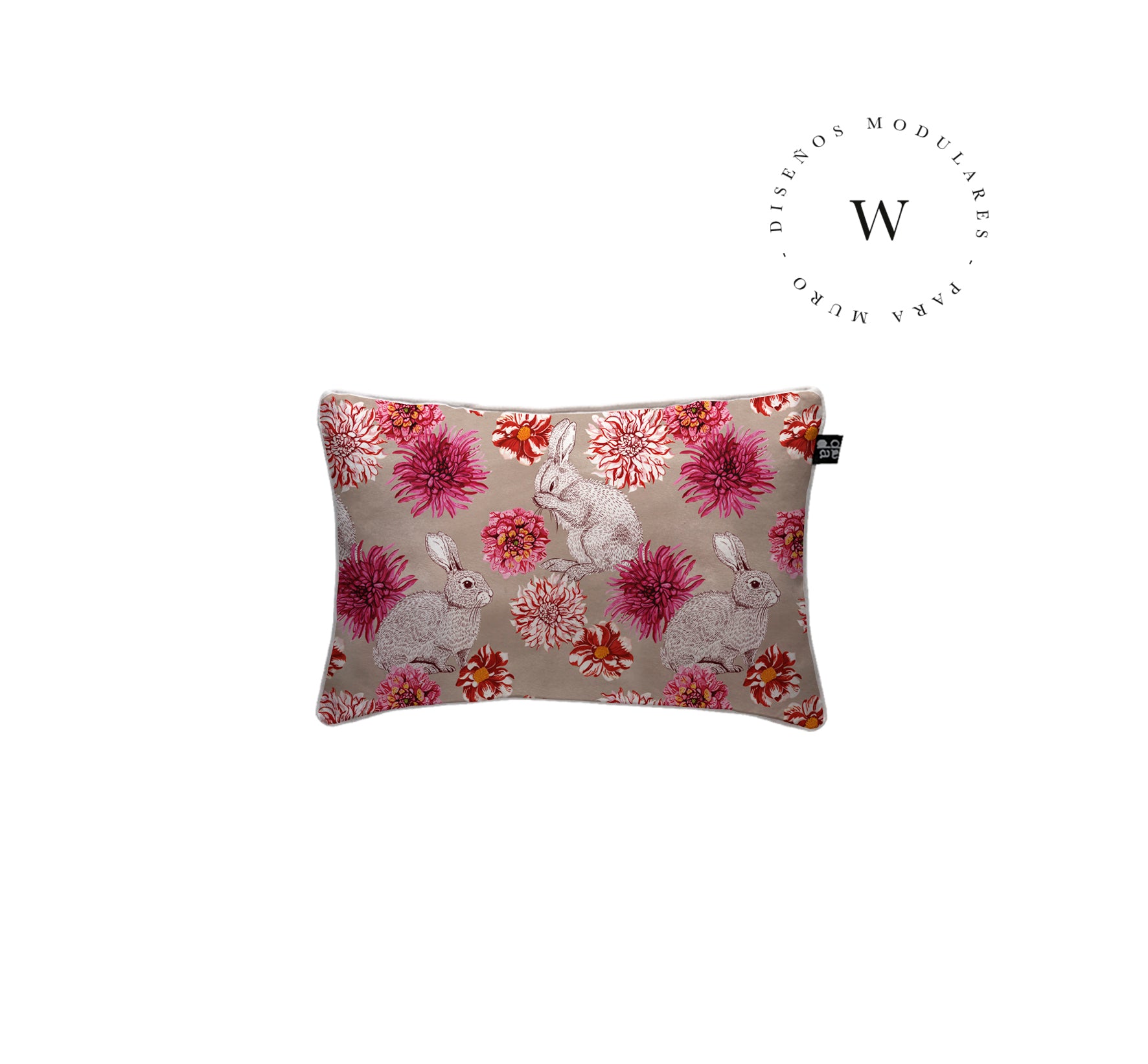 2. Cojín 60 x 40 cm: Diseño por ambos lados, con cordón perimetral, cierre invisible, relleno algodón sintético removible.