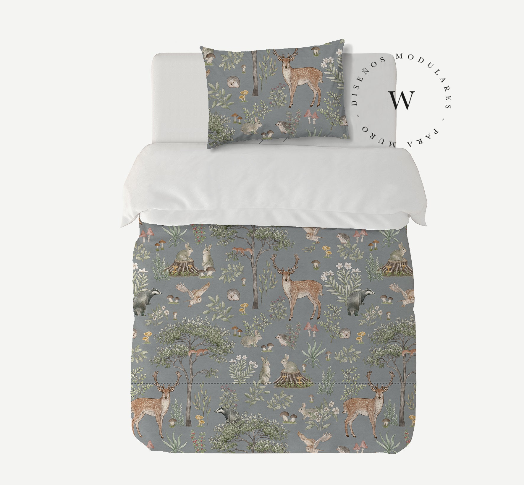 8. Funda de plumón 1 Plaza 150 x 240 cm: Funda plumón, diseño por una cara, reverso liso con cierre invisible en la parte inferior + 1 funda de almohada 70 x 50 cm con cierre invisible. No incluye rellenos.
