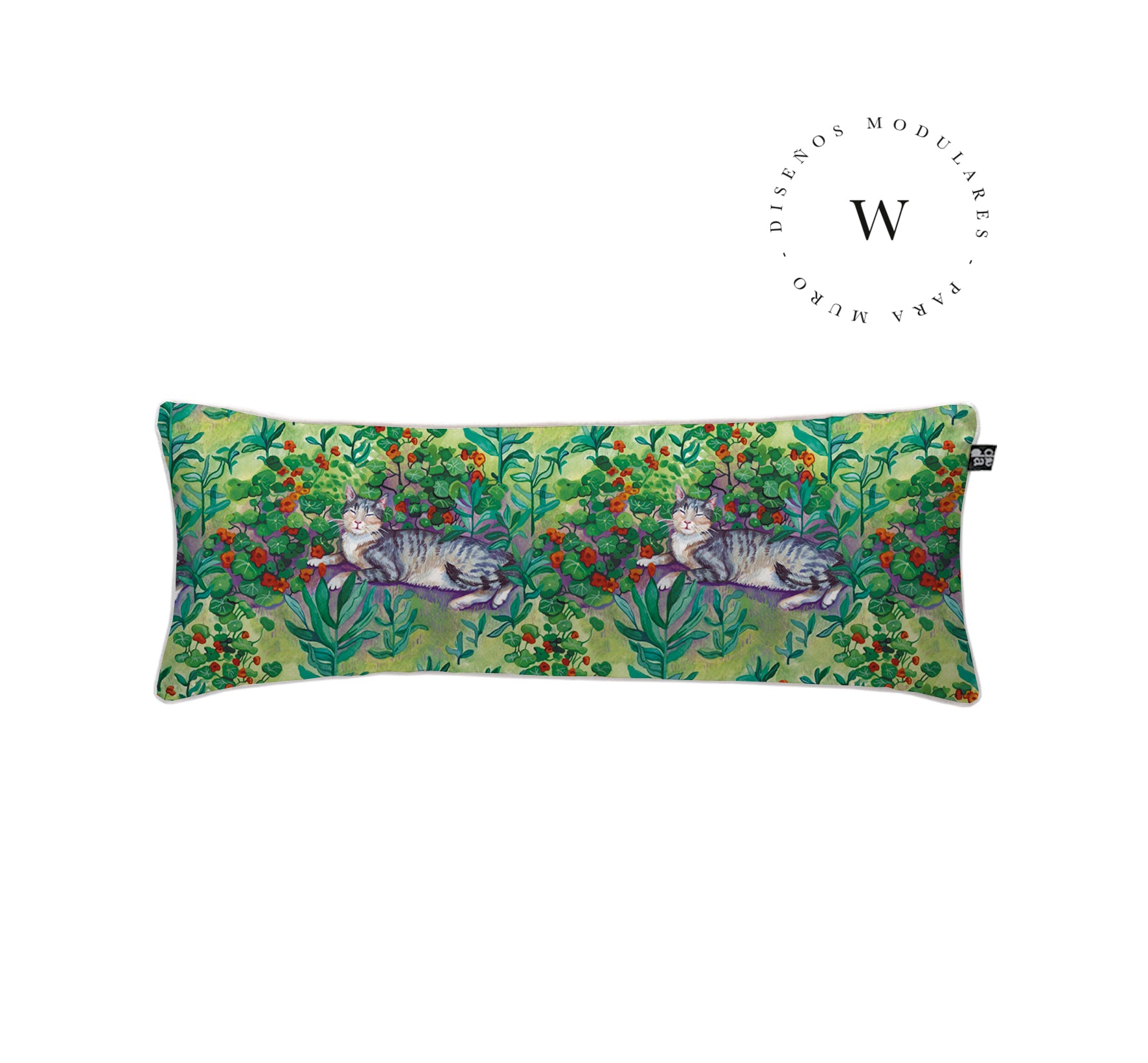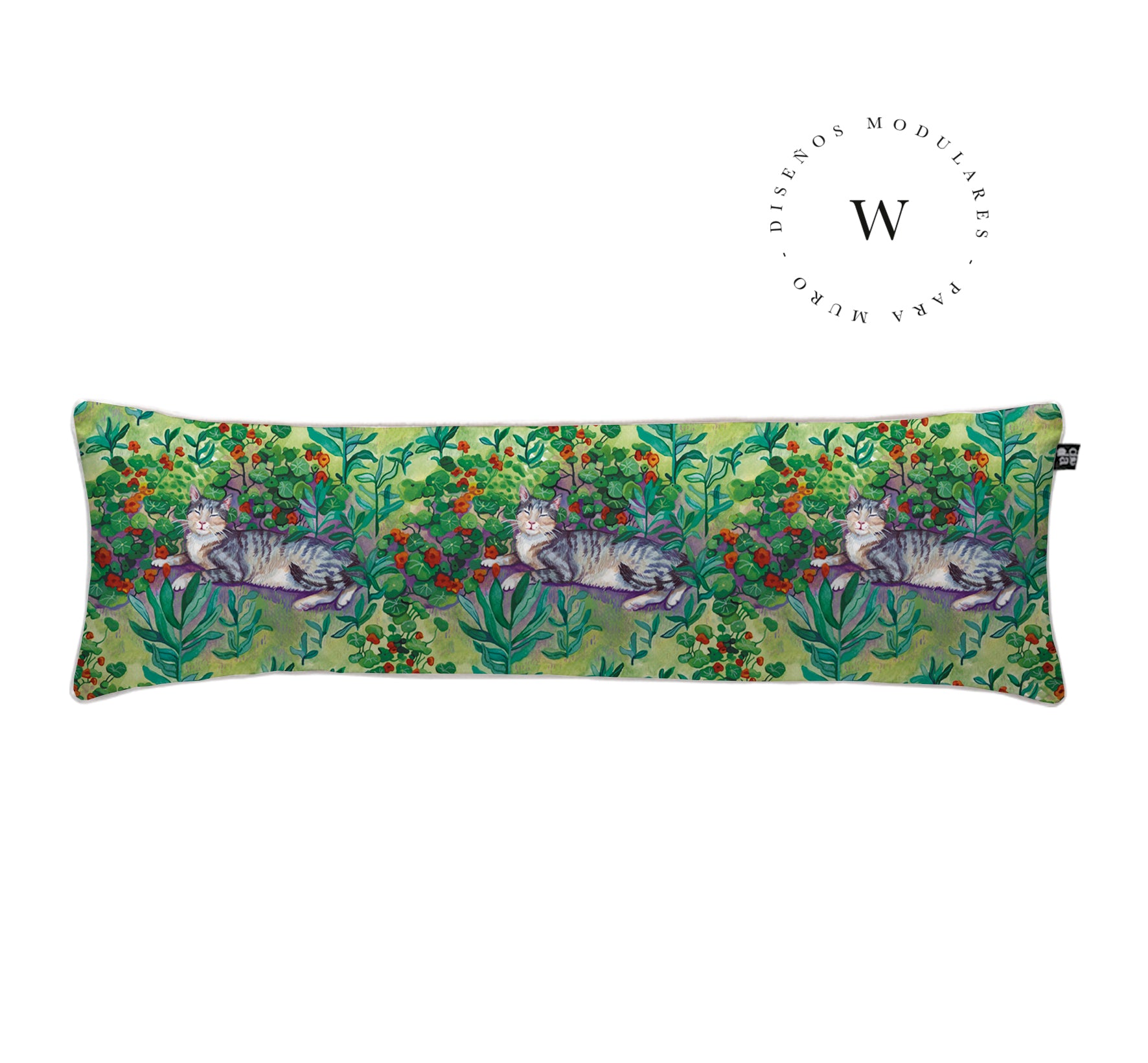 5. Cojín 120 x 35 cm: Diseño por ambos lados, con cordón perimetral, cierre invisible, relleno algodón sintético removible.