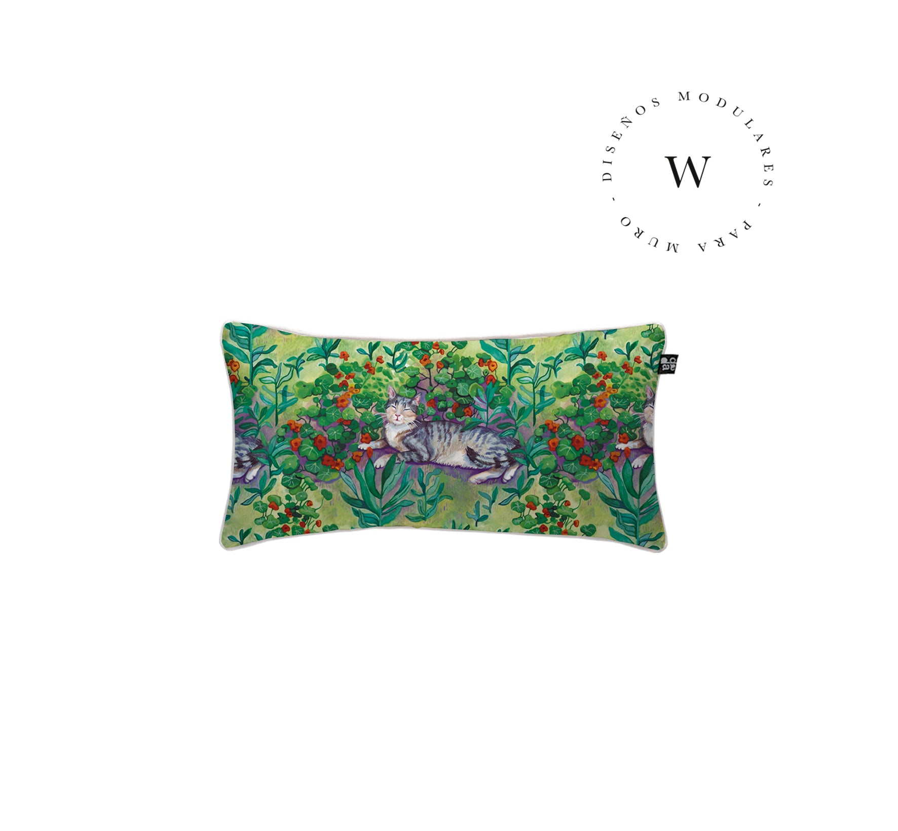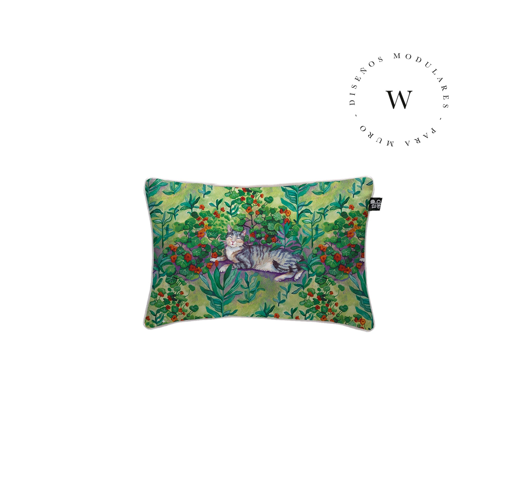 2. Cojín 60 x 40 cm: Diseño por ambos lados, con cordón perimetral, cierre invisible, relleno algodón sintético removible.