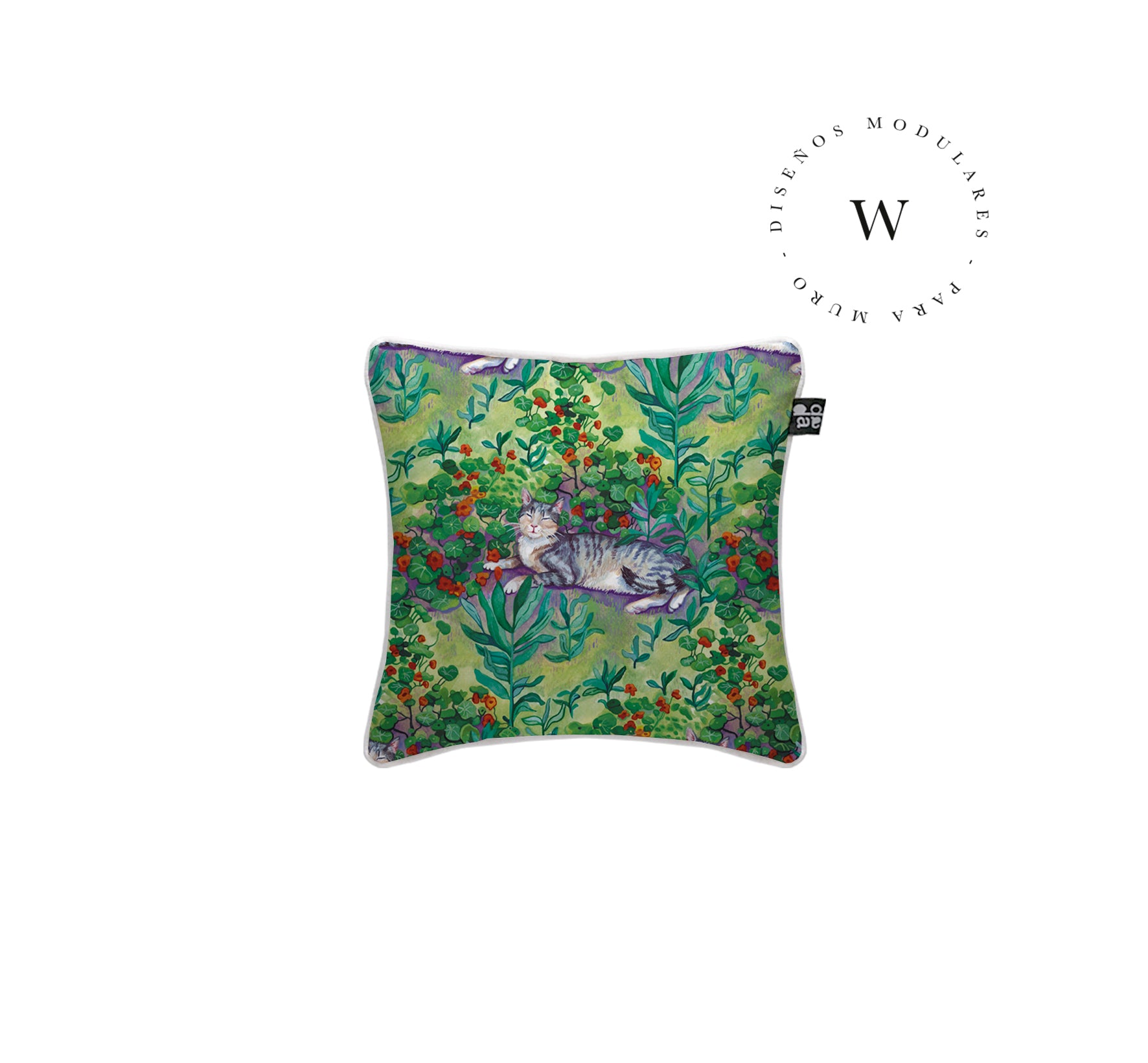 1. Cojín 45 x 45 cm: Diseño por ambos lados, con cordón perimetral, cierre invisible, relleno algodón sintético removible.