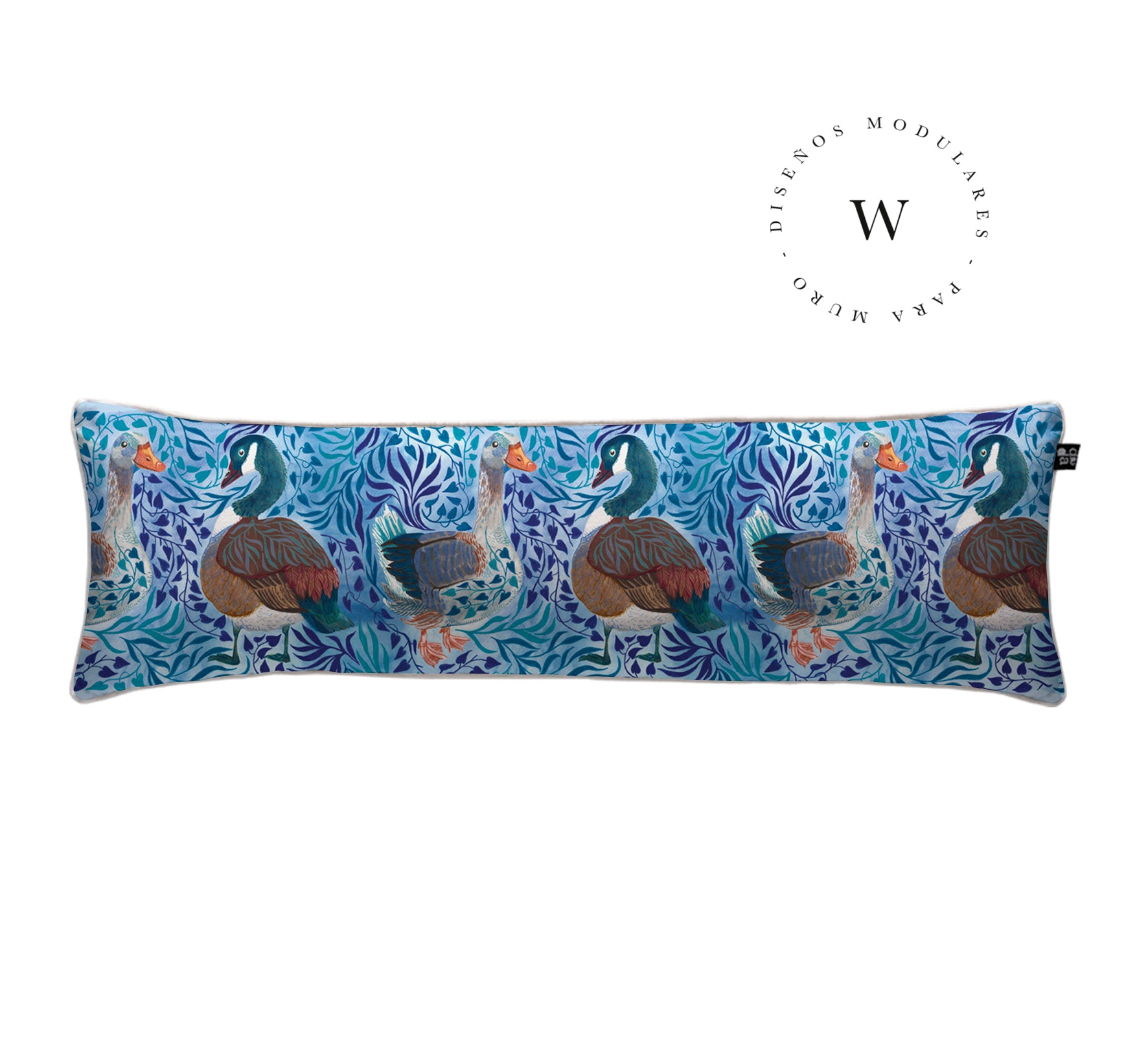 5. Cojín 120 x 35 cm: Diseño por ambos lados, con cordón perimetral, cierre invisible, relleno algodón sintético removible.