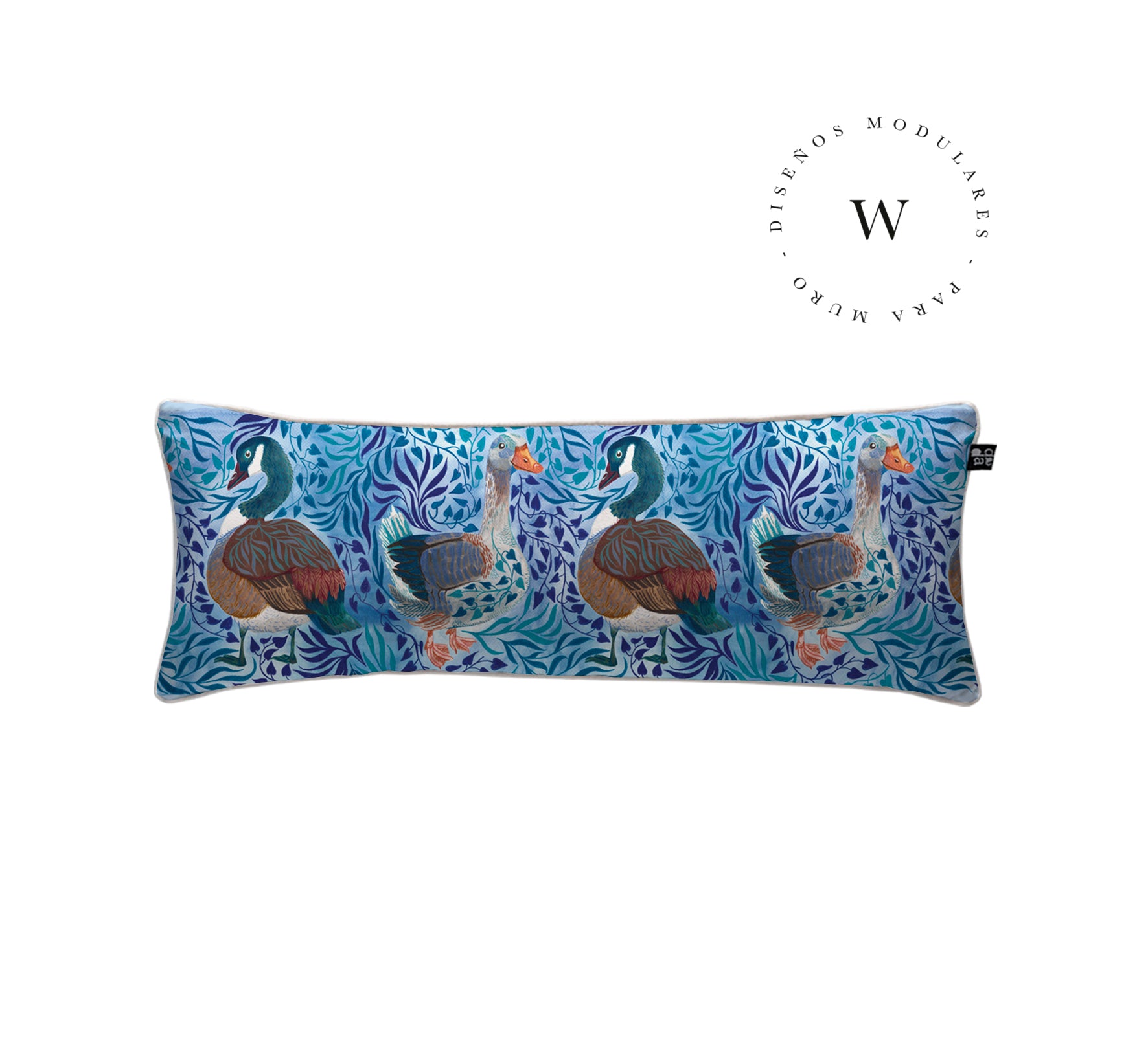 3. Cojín 70 x 35 cm: Diseño por ambos lados, con cordón perimetral, cierre invisible, relleno algodón sintético removible.