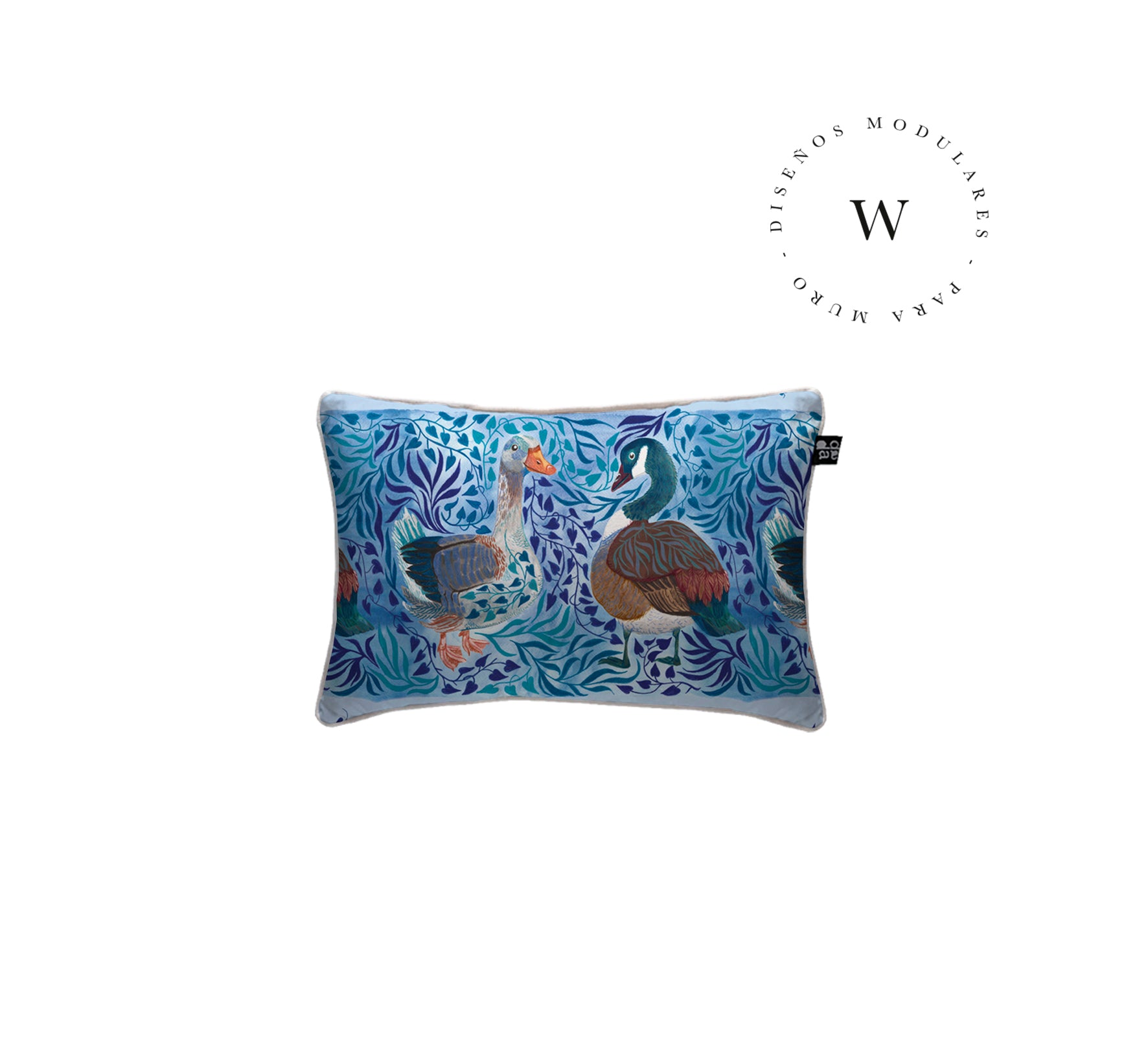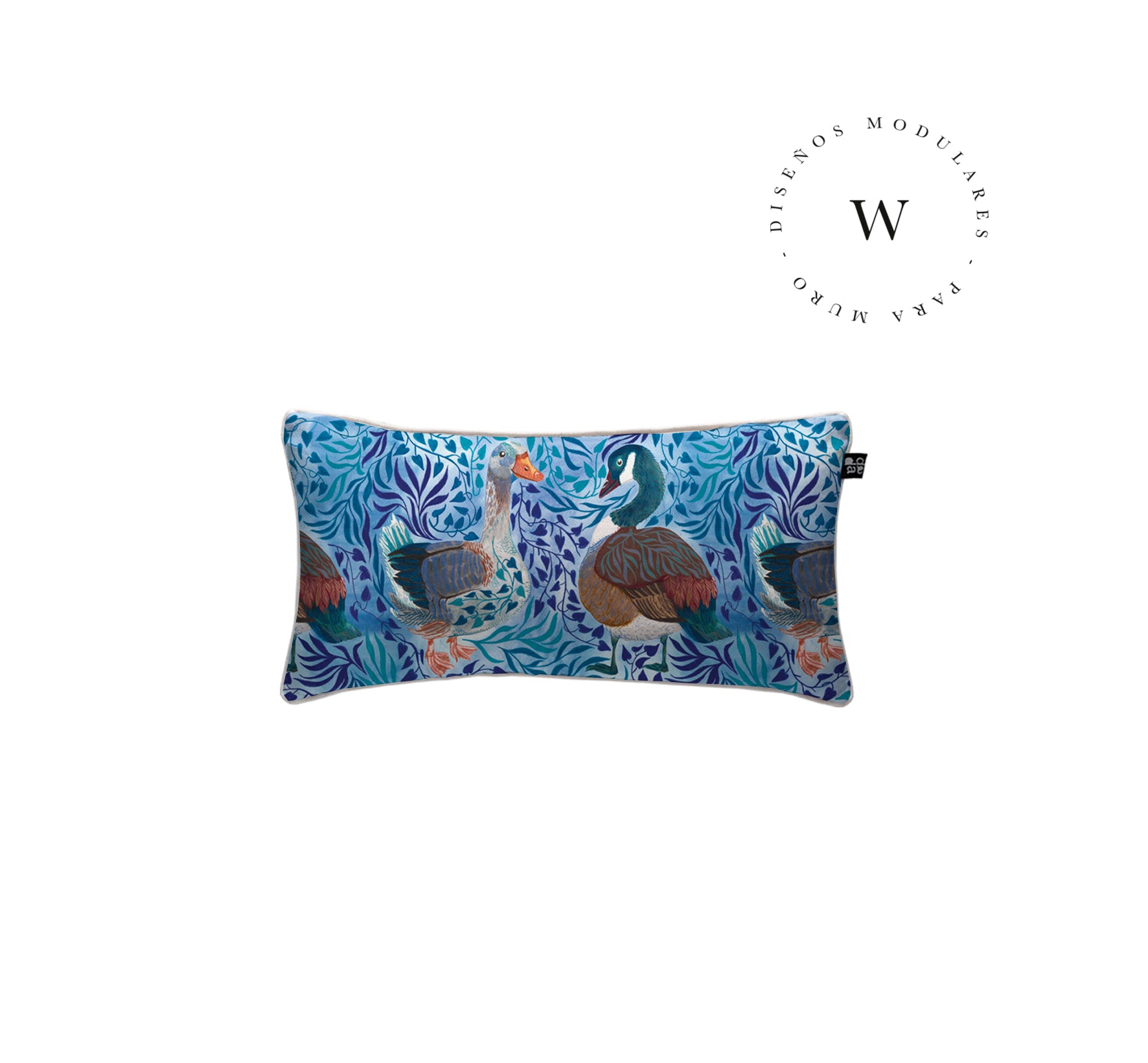 2. Cojín 60 x 40 cm: Diseño por ambos lados, con cordón perimetral, cierre invisible, relleno algodón sintético removible.