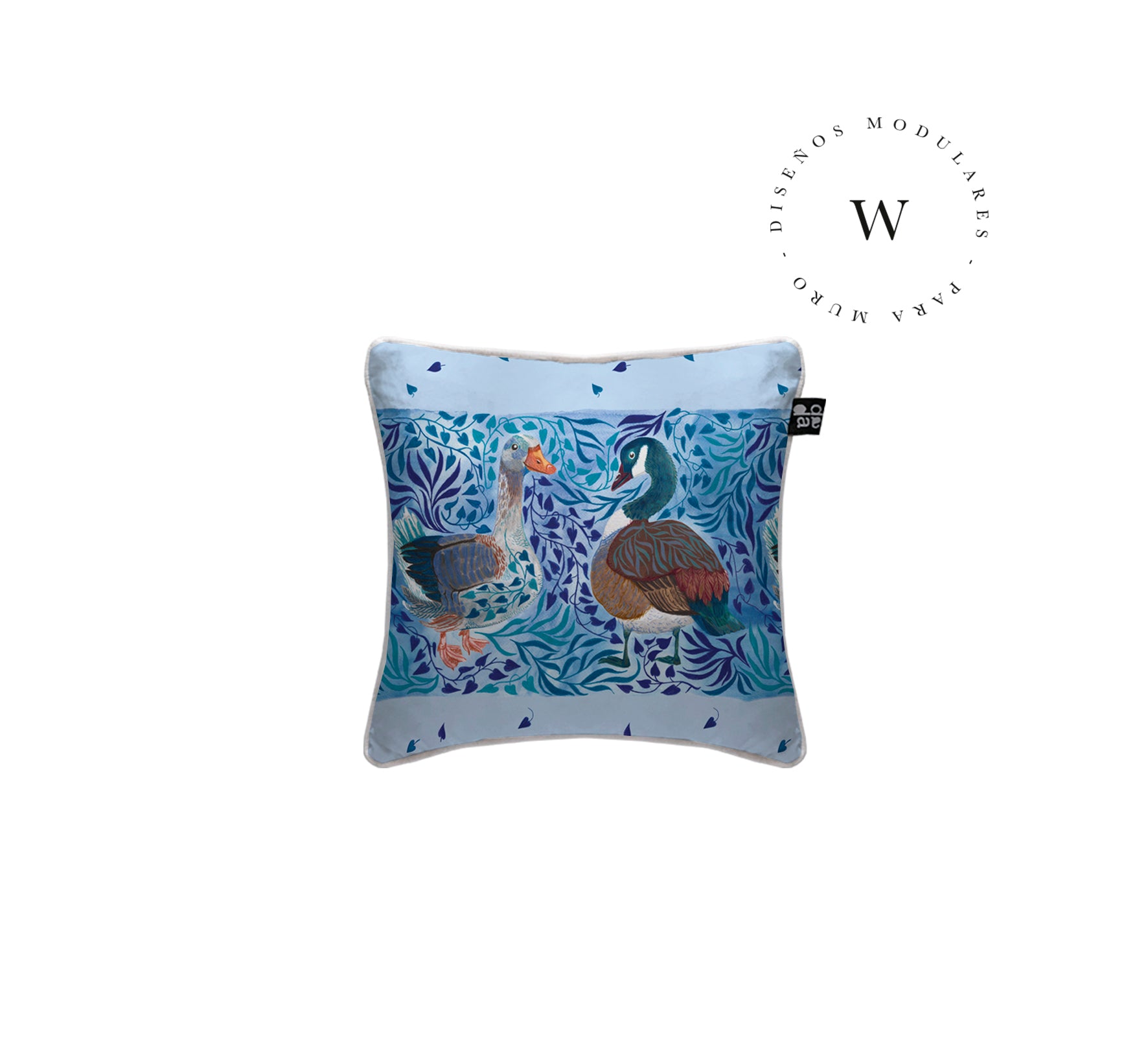 1. Cojín 45 x 45 cm: Diseño por ambos lados, con cordón perimetral, cierre invisible, relleno algodón sintético removible.