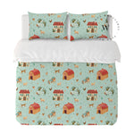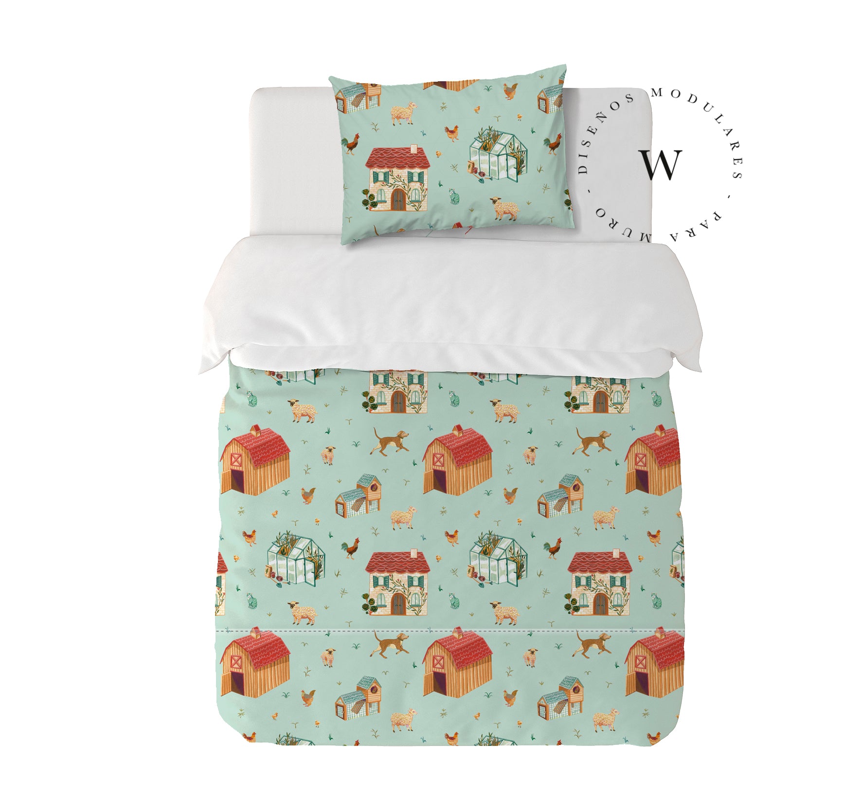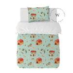 8. Funda de plumón 1 Plaza 150 x 240 cm: Funda plumón, diseño por una cara, reverso liso con cierre invisible en la parte inferior + 1 funda de almohada 70 x 50 cm con cierre invisible. No incluye rellenos.
