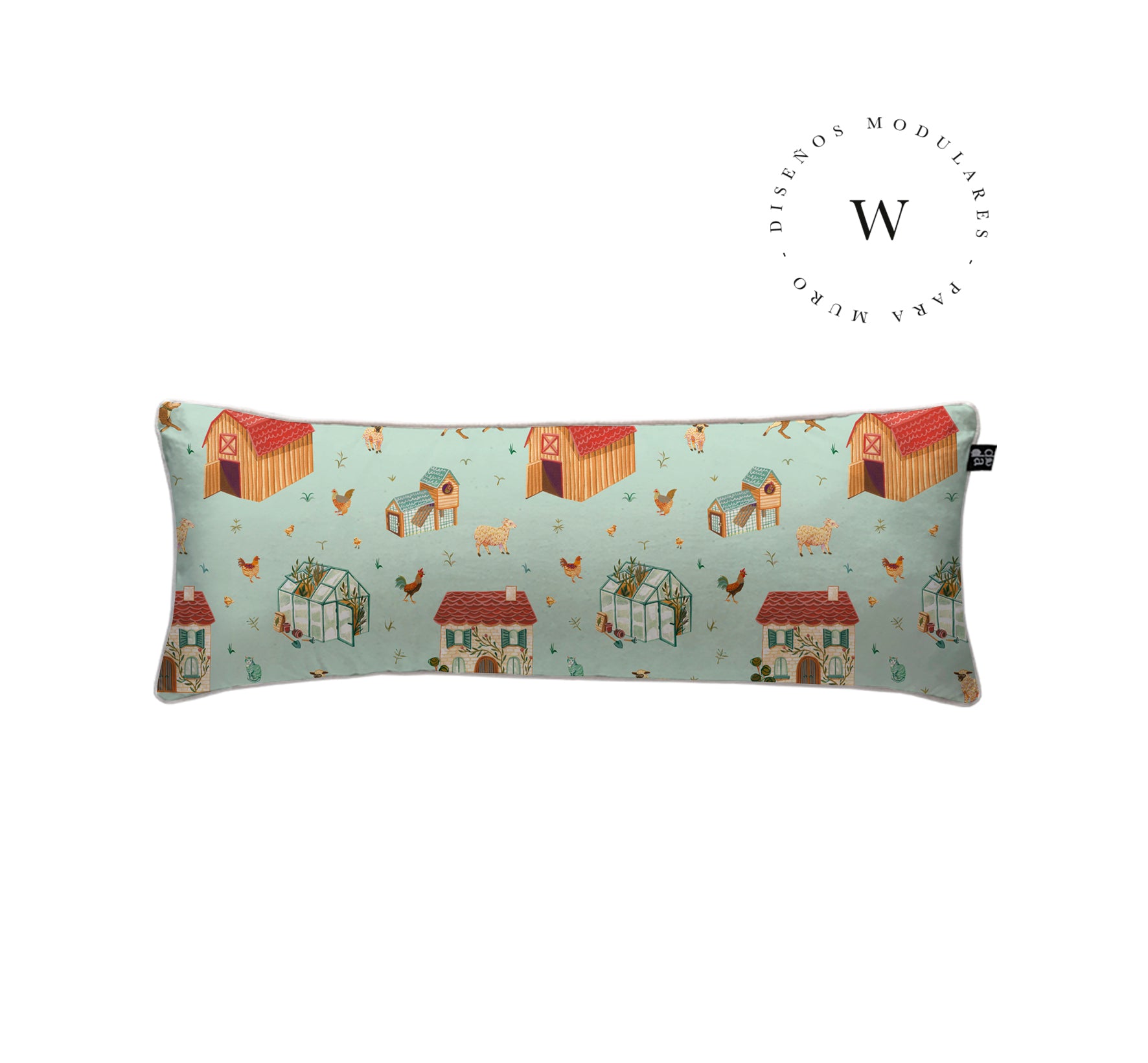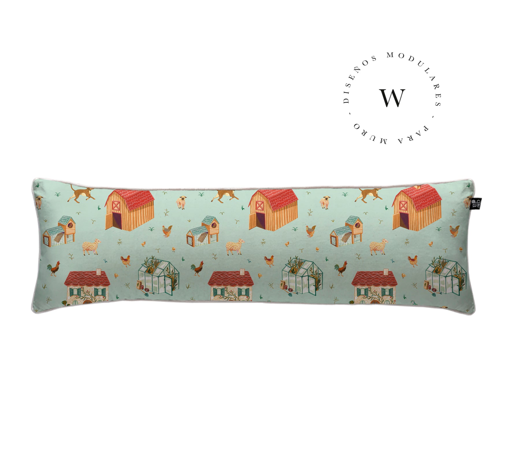 5. Cojín 120 x 35 cm: Diseño por ambos lados, con cordón perimetral, cierre invisible, relleno algodón sintético removible.