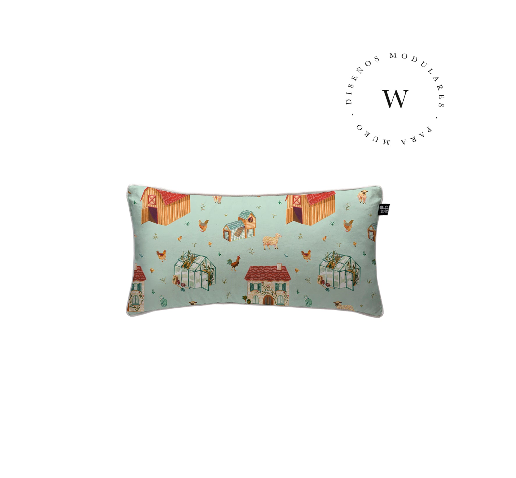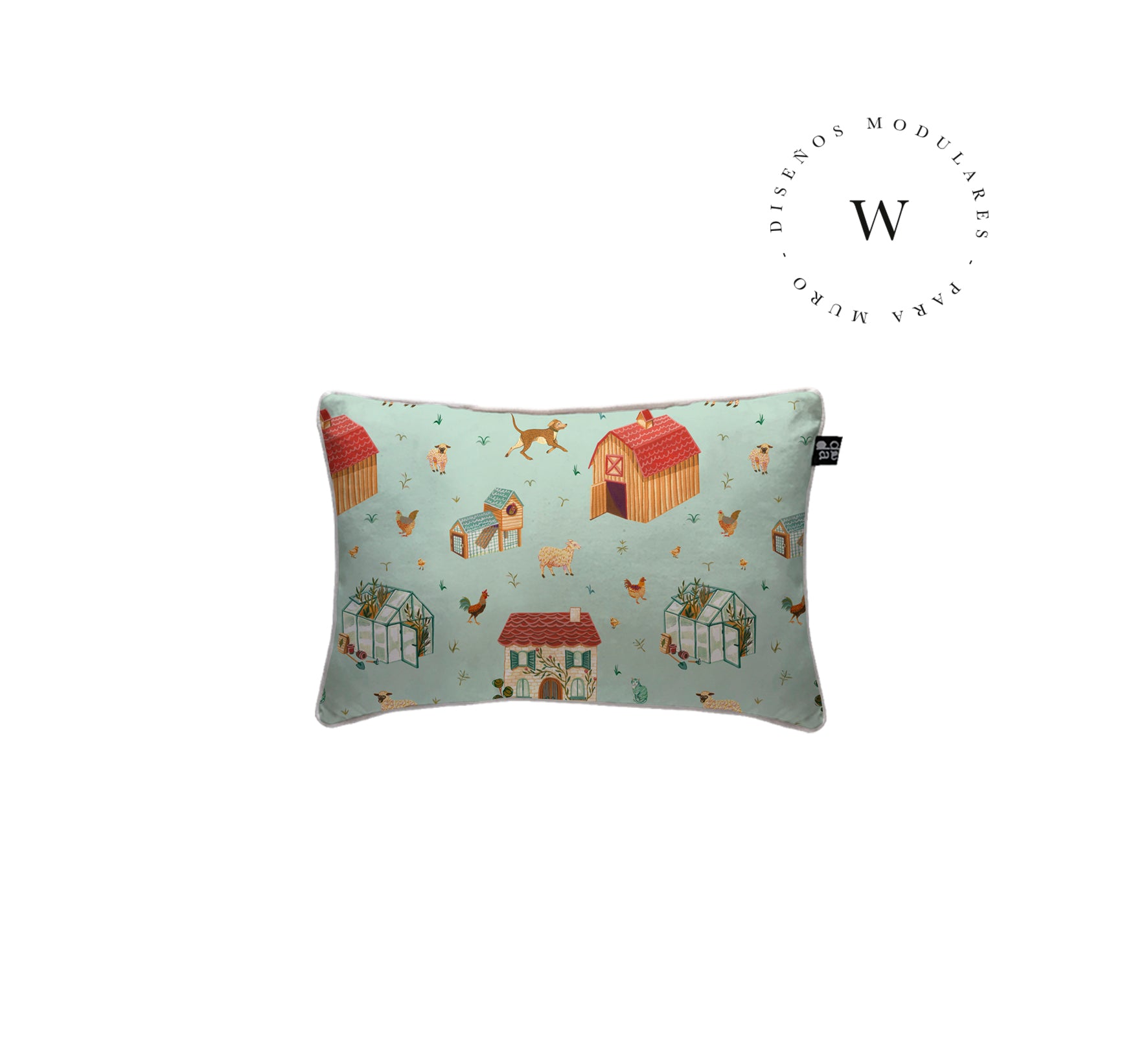 2. Cojín 60 x 40 cm: Diseño por ambos lados, con cordón perimetral, cierre invisible, relleno algodón sintético removible.