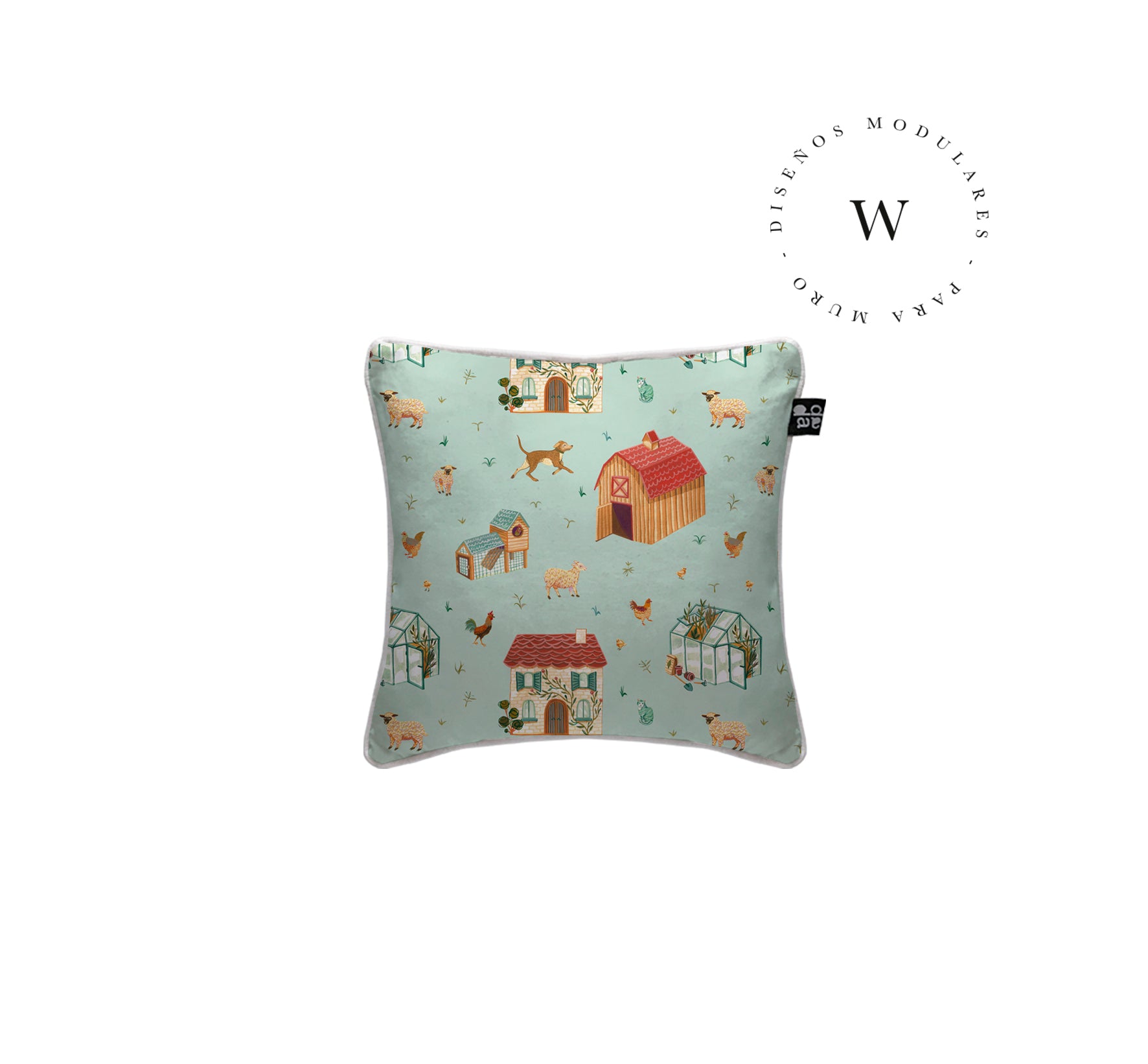 1. Cojín 45 x 45 cm: Diseño por ambos lados, con cordón perimetral, cierre invisible, relleno algodón sintético removible.